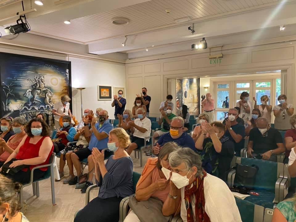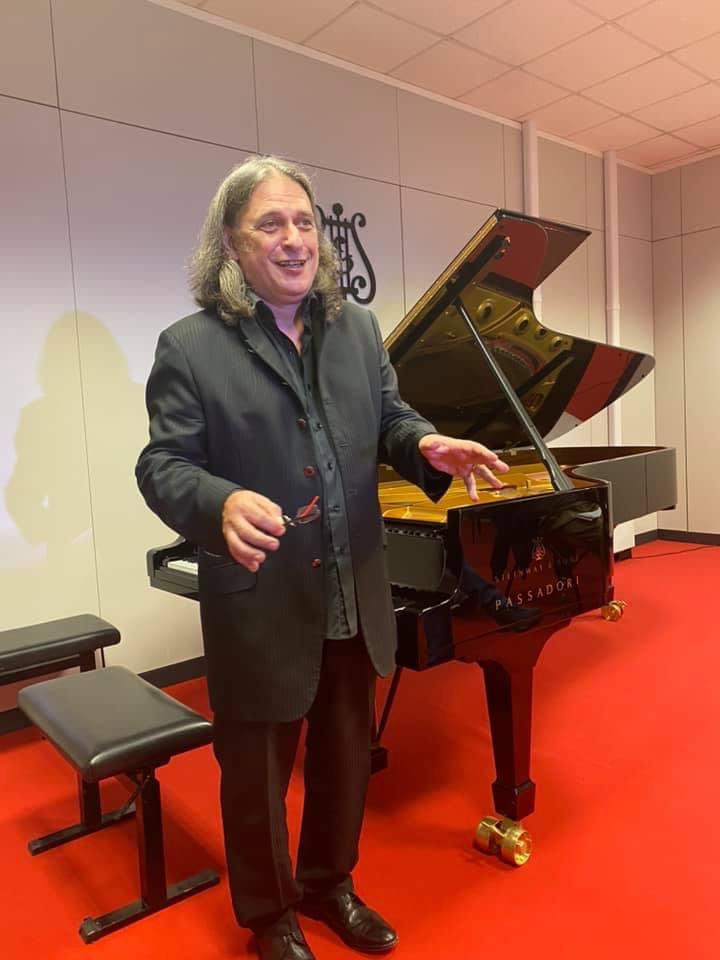 And finally the Cremona Music Award to Richard Danielpour with performances by Stefano Greco part of a CD that was recorded in Rome just last week.I was able to catch only the very tail end of this and was sorry not to be able to listen to more of Stefano’s magnificent playing .Richard I caught up with the next morning in the round table dedicated to Hybrid Music Teaching.His teacher was Leonard Bernstein and he has his same hypnotic charm as he explained how he had tried to help his students psychologically during the lockdown as music is about love and the connection between human beings .He had written a fifteen movement work ‘American Mosaic’that was performed on four grand pianos placed strategically in a cemetery as the performer moved from one to another.Here is his very moving story :