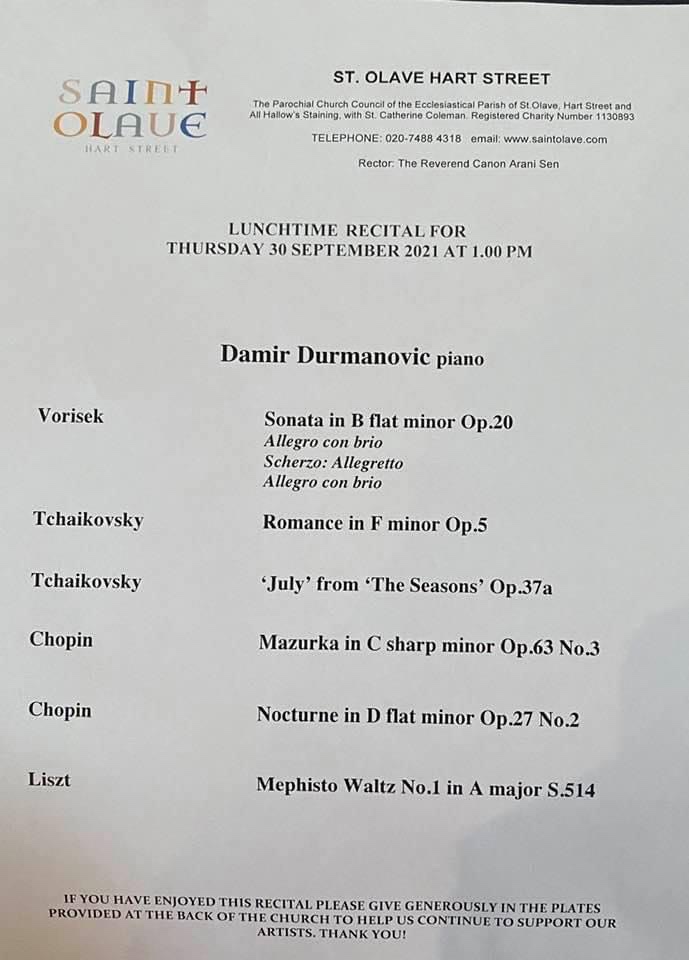 Immediately next door in the Amati room I had promised to hear another of Julia Mustonen’s students KaJeng Wong.Some quite magnificent performances of Rachmaninov on a sumptuous Petrof piano.