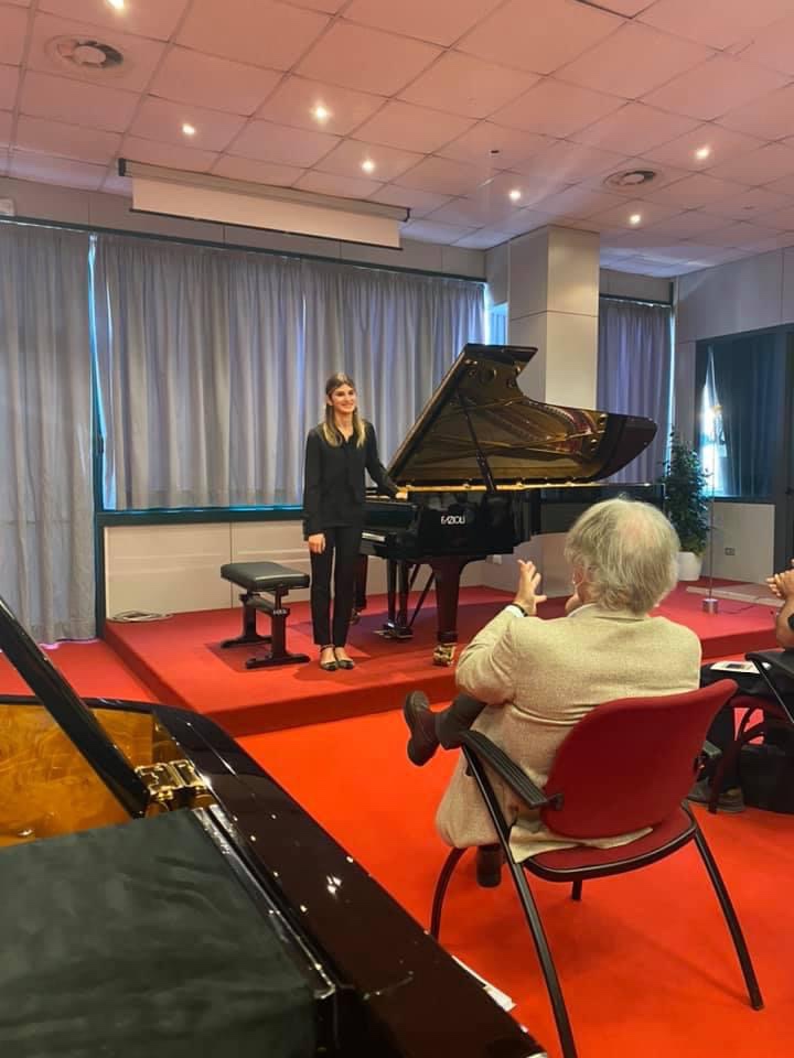 Simone Librale,a student of Maurizio Baglini was not able to play so at the last minute another of his students Lucrezia Liberati stood in with an even more eclectic programme.Schumann’s op 8 ,the rarely played Allegro in B minor that was to be the first movement of a Sonata that was never realised.Together with the extraordinary ‘Night music’ from Bartok’s Suite ‘Out of doors’.Works that are as much a trial for the piano as they are for the pianist.