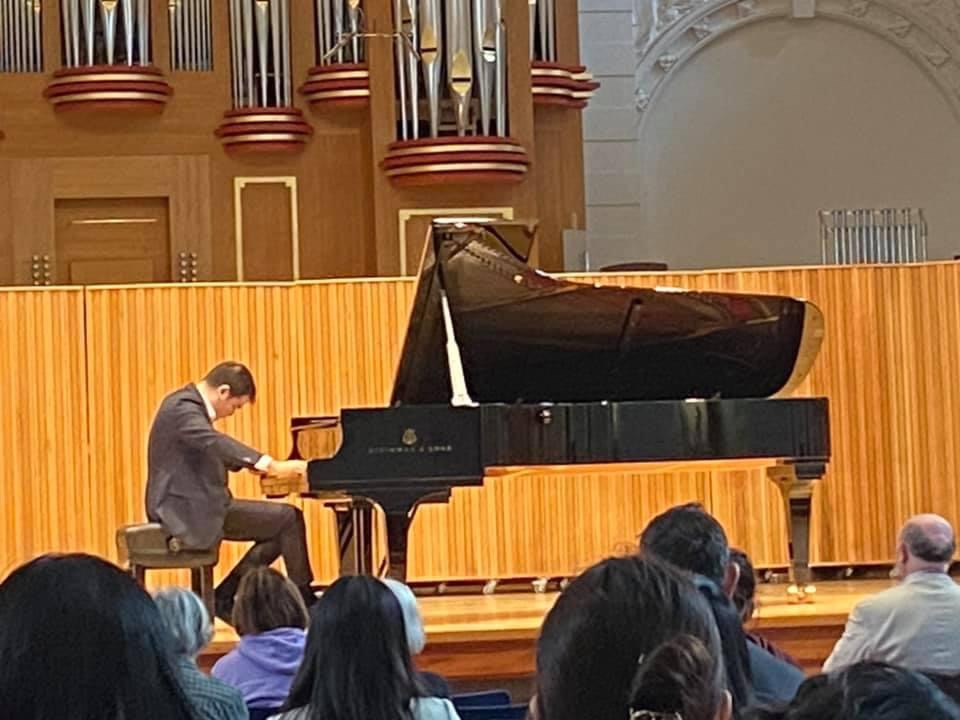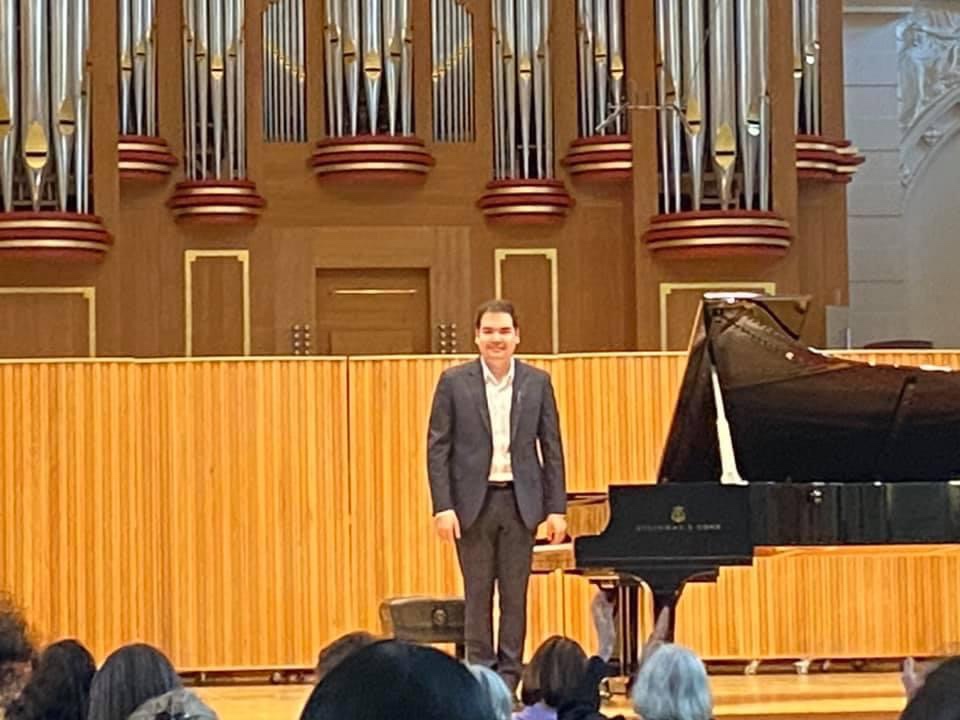 The Larghetto was played with a childlike simplicity at the opening where Pietro’s minute attention to Mozart’s phrasing brought such shape to this seemingly innocent melody.The absolute simplicity of the melodic line was delicately embellished and added to the sublime beauty of this movement.The opening melody’s final statement occurs as a shadowy whisper, the piano, flute and violins sharing the melody and creating an almost ghostly sonority played with real chamber music intensity by Pietro.The final Allegro was played with a beguiling sense of rhythm as Pietro took turns to dialogue with the orchestra bringing such buoyancy and energy to this seemingly innocent bucolic movement.Sometimes overdoing the contrasts though as a young man exhilarated by the masterpiece under is agile fingers.Always returning though to sublime beauty as the end of Mozart’s cadenza dissolves into the magical last appearance of the main theme.The entry of the strings underneath creates one of those sublime moments that is the genius of Mozart and leads to the simple final flourishes of Mozart’s last great piano concerto.
