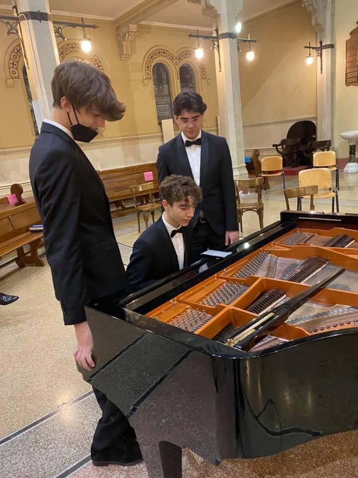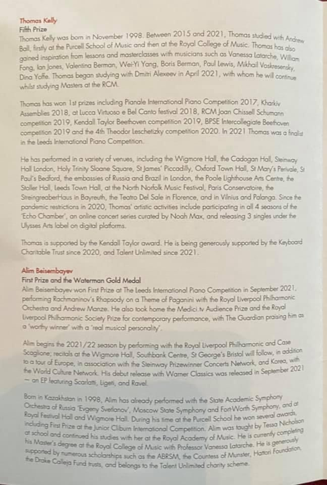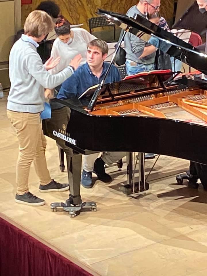 Two young pianists with completely different characters brought together by the genial Sieva Borzak.He had immediately resolved problems of acoustic in the rehearsal as he brought the piano as close to the edge of the stage as possible allowing the wind players to be able to have a more chamber music rapport with the piano which is so fundamental in these mature concertos of Mozart.