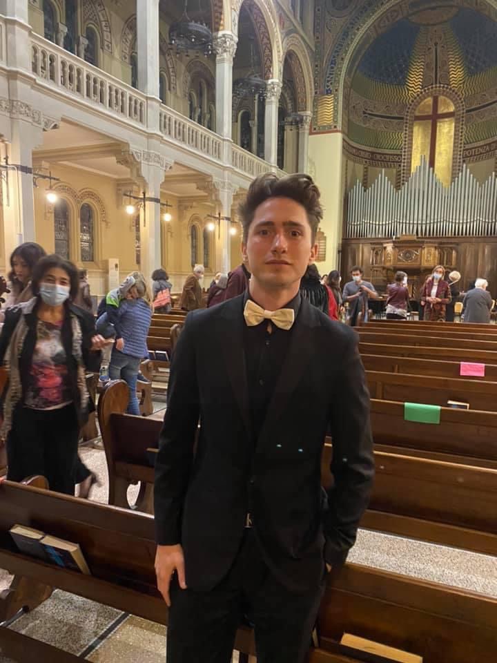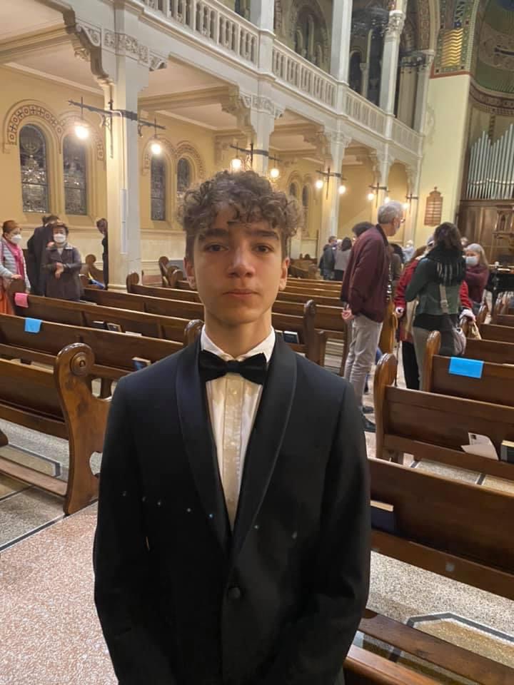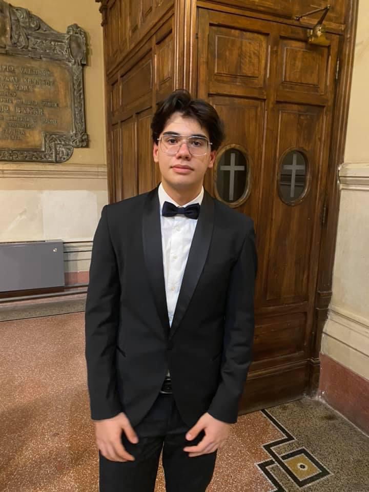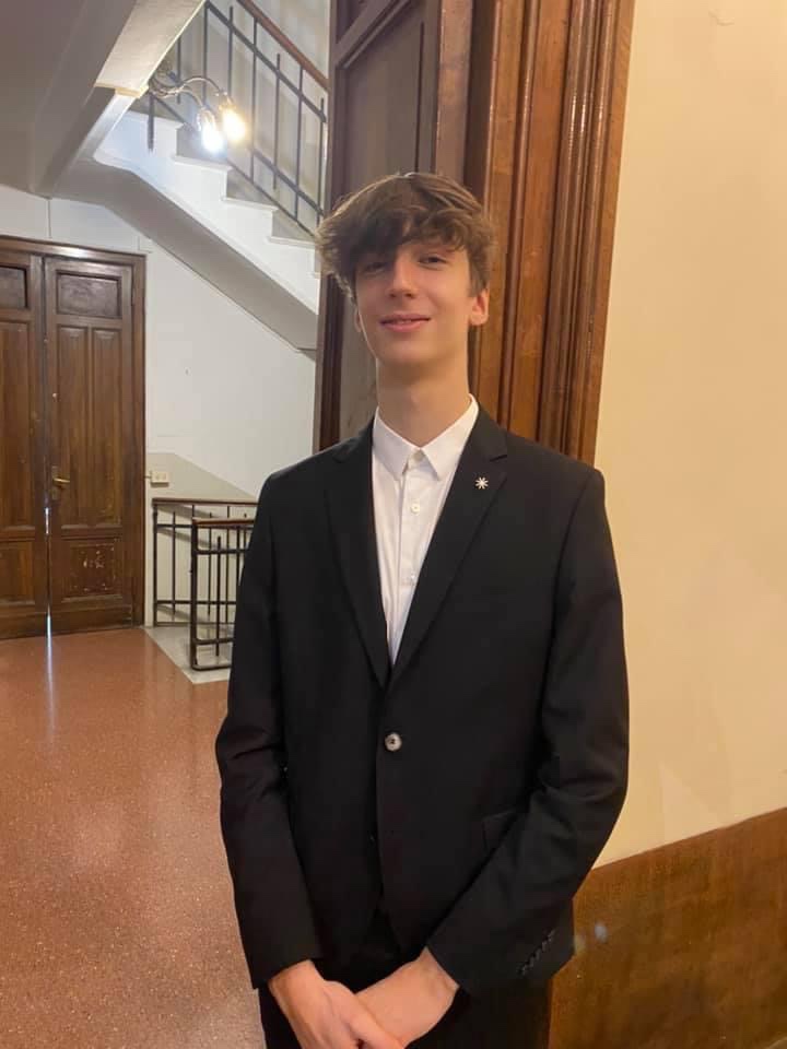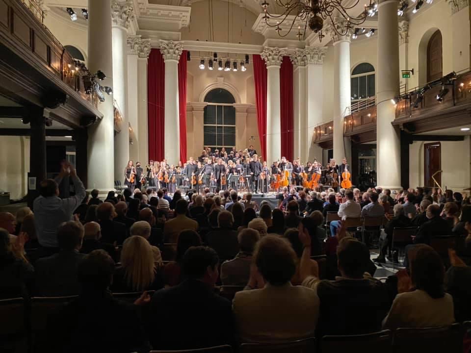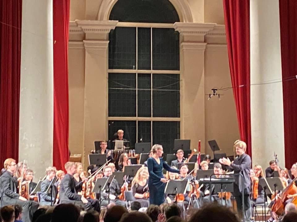 Pietro Fresa on the other hand in a much more sombre dark suit as befitted the dark and subtle beauty of the B flat Concerto.The sublime opening barely a whisper from an orchestra where exhilaration and rhythmic excitement had been transformed into a serene meditative atmosphere.And Mozart’s sense of energy of almost operatic proportions was played with great precision and contrasts by an orchestra following so attentively the ‘Giulinian’ shaping from Sieva’s expressive hands.The scene was set for the mellow simplicity of Pietro Fresa’s opening statement.Played with a purity of sound almost chiselled as it penetrated to the very back of the hall with extraordinary clarity.Injecting the delicate passage work with the romantic fervour of a young man on a voyage of discovery.Some very personal touches gave great character to the continual dialogue with the orchestra.The gradual build up in the development section was beautifully integrated into the orchestra and led to a sublime outpouring of melodic invention before the gradual return to the recapitulation.The precision of his articulation was remarkable in its clarity and shape and led to Mozart’s own cadenza that was played with great style.It brought the same question and answer that we had heard earlier with the orchestra but now alone played with even more delicacy and character.