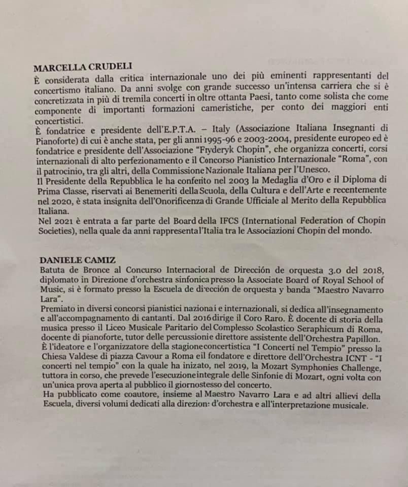 Sieva with many less years than Perlemuter immediately diagnosed the problem and like all great professionals found a simple solution.The orchestra under his hands were able to give all the dramatic contrasts and operatic energy to the earlier G major concerto together with the sublime legato and serenity of the B flat concerto.Leaving the important dialogue between wind and piano to a chamber music participation between the pianist and the instrumentalists that was extremely moving.A fine ensemble that Valerio Vicari and Roberto Pujia have been promoting for the past sixteen years giving a much needed platform to many remarkable young musicians at the beginning of their careers.