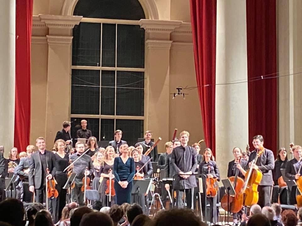 Pietro Fresa on the other hand in a much more sombre dark suit as befitted the dark and subtle beauty of the B flat Concerto.The sublime opening barely a whisper from an orchestra where exhilaration and rhythmic excitement had been transformed into a serene meditative atmosphere.And Mozart’s sense of energy of almost operatic proportions was played with great precision and contrasts by an orchestra following so attentively the ‘Giulinian’ shaping from Sieva’s expressive hands.The scene was set for the mellow simplicity of Pietro Fresa’s opening statement.Played with a purity of sound almost chiselled as it penetrated to the very back of the hall with extraordinary clarity.Injecting the delicate passage work with the romantic fervour of a young man on a voyage of discovery.Some very personal touches gave great character to the continual dialogue with the orchestra.The gradual build up in the development section was beautifully integrated into the orchestra and led to a sublime outpouring of melodic invention before the gradual return to the recapitulation.The precision of his articulation was remarkable in its clarity and shape and led to Mozart’s own cadenza that was played with great style.It brought the same question and answer that we had heard earlier with the orchestra but now alone played with even more delicacy and character.