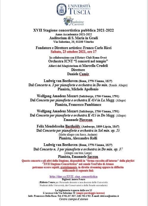 Encore at the Reate Festival at Teatro Vespasiano in Rieti just 60km from Rome.Not only the two piano concertos as before but also the Symphony n.40 in G minor K 550