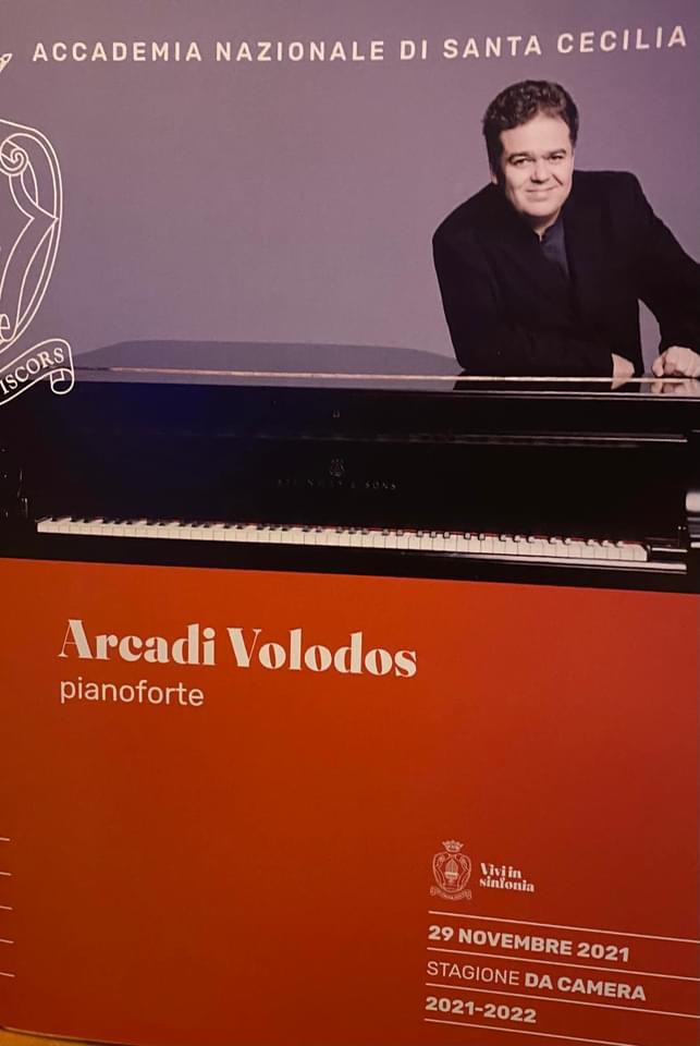 Arcadi Volodos at S.Cecilia that like Richter chose to play in penombre as he comuned with the very soul of Schubert’s D major Sonata. Sounds of sublime beauty contrasting with driving rhythmic urgency.Moments of such ravishing beauty that time seemed to stand still as he relished the perfumed sounds of such subtle fragrance.Sounds that I have only ever heard from Gilels where his fingers were like limpets driving deep into each key to produce velvet sounds of glowing richness.