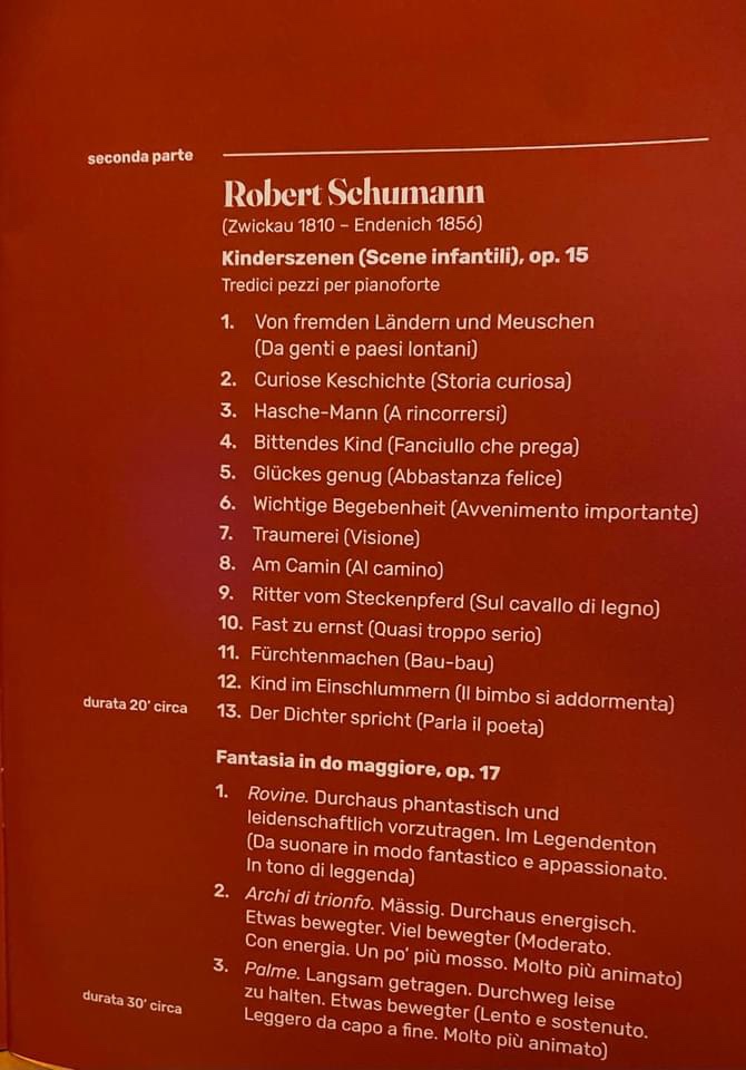 Five encores were generously offered to the very small but enthusiastic audience.The slow movement from the A major Sonata op posth by Schubert where for a moment the turbulent middle section seemed to bring some much needed contrast to the sublime sounds he had teased out of the piano before and after.Another four encores including the famous Brahms Intermezzo op 117 and other works that I could not identify but presume of the school of Scriabin even with a hint of Sondheim in one of them.But where is the Volodos of the Turkish March or the other fabulous encore pieces that had us all in delirium the first time he appeared in Rome.A recital programme must have some shape and contrast and be like a great theatrical production full of every facet of life .Grief ,sadness,and whispered secrets but also joy,life and exhilaration.It is a show and needs a showman to lead us like Rubinstein or Horowitz or indeed the greatest showman ever,Franz Liszt.