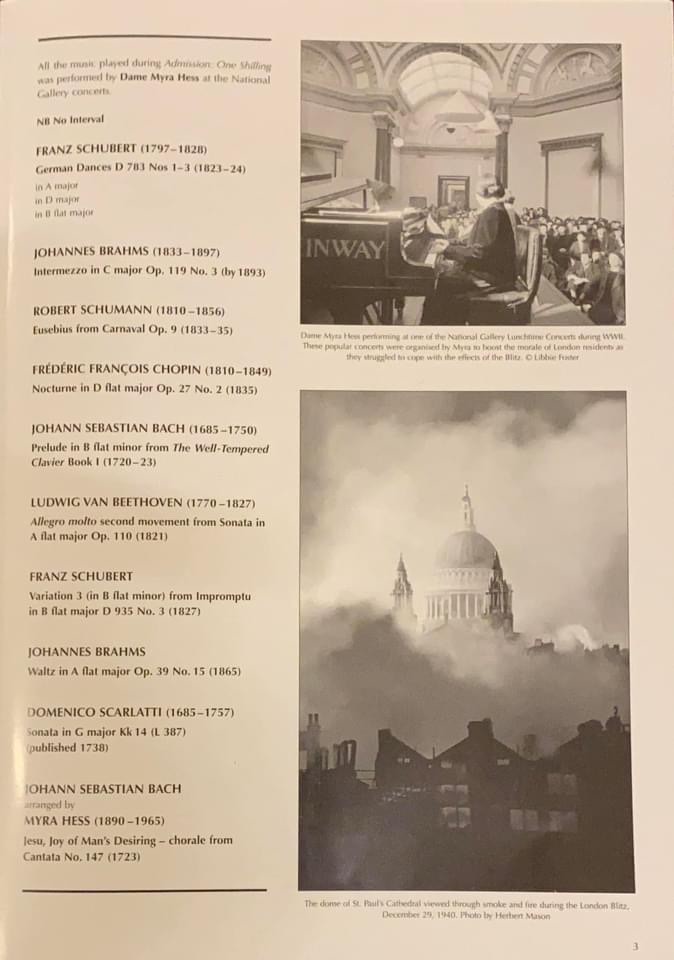 It was also fascinating to hear Dame Myra in a short film playing part of Mozart’s G major Concerto and to see a very youthful David Martin and Frederick Grinke in military uniform leading the chamber orchestra in the National Gallery.