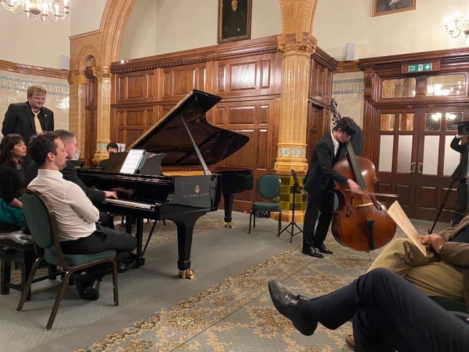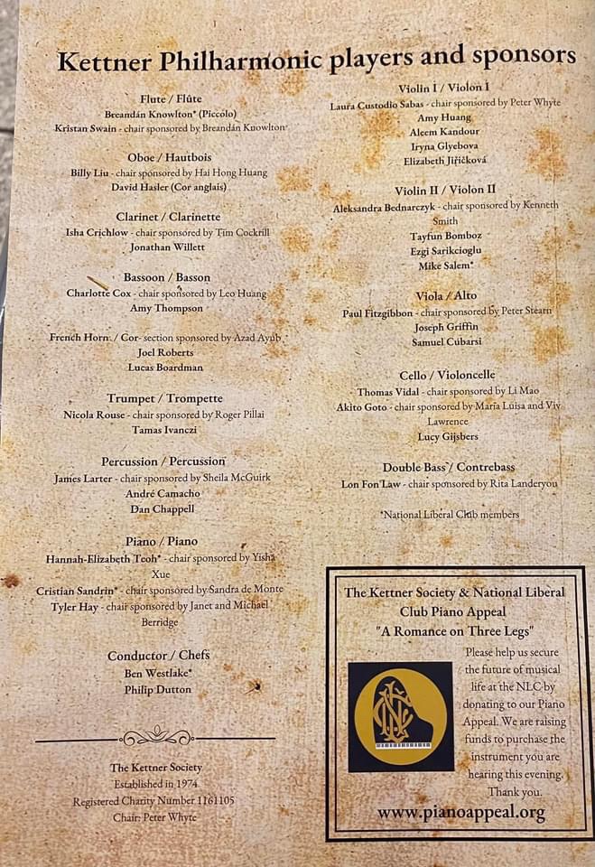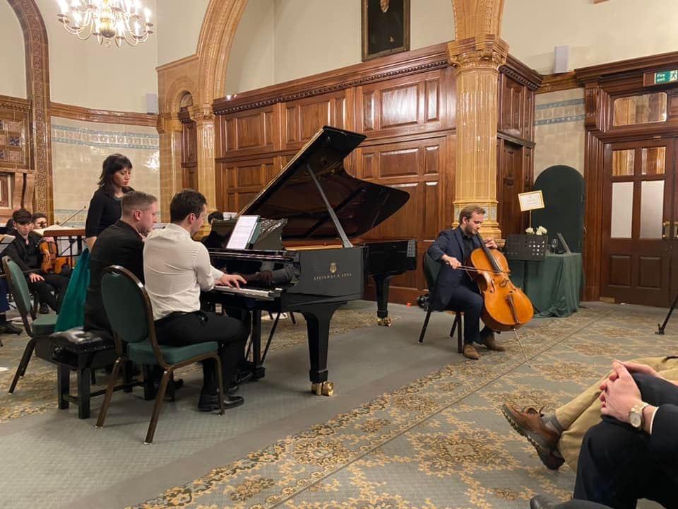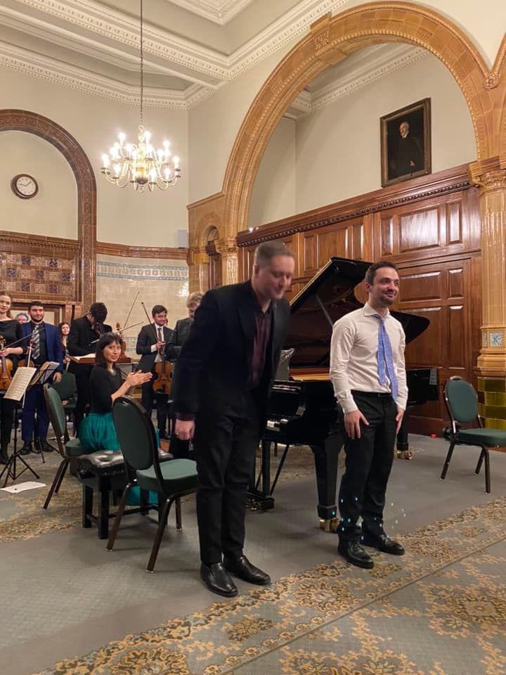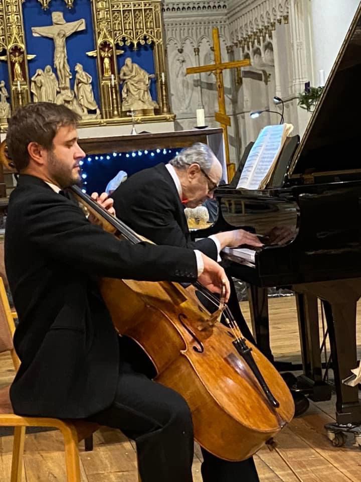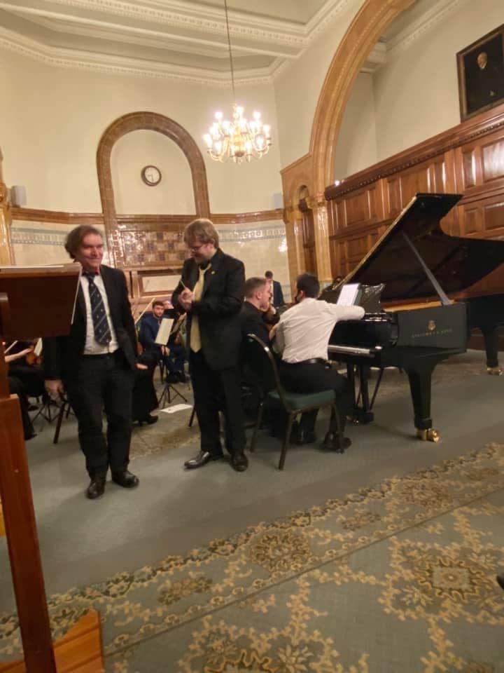 Cristian having been asked with only two days notice to substitute an indisposed colleague and also having played the evening before in the centenary celebrations of Saint- Saens at the National Liberal Club.Enjoying every minute with Tyler Hay and the Kettner Philharmonic of the scintillating effervescence of Carnaval of the Animals .Well it is Christmas after all!