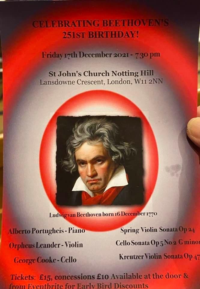 Ending with an encore of the Scherzo from the Archduke Trio op 97.We were thus treated to a lifetime’s journey from Beethoven’s youthful op 5 cello sonata and the Violin Sonatas op 24 ‘Spring’.Followed after a brief interval with his maturity in the ‘Kreutzer’ Sonata op.47 to the Archduke Trio op 97 written just sixteen years before his death.