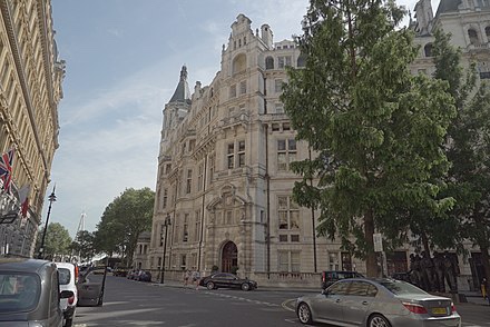 The club’s foundation stone on the modern clubhouse was laid by Gladstone on 9 November 1884, when he declared “Speaking generally, I should say there could not be a less interesting occasion than the laying of the foundation-stone of a Club in London. For, after all, what are the Clubs of London? I am afraid little else than temples of luxury and ease. This, however, is a club of a very different character”, and envisioned the club as a popular institution for the mass electorate.However, another of the club’s founders, G.W.E.Russell, noted “We certainly never foresaw the palatial pile of terra-cotta and glazed tiles which now bears that name. Our modest object was to provide a central meeting-place for Metropolitan and provincial Liberals, where all the comforts of life should be attainable at what are called ‘popular prices'”, but added “at the least, we meant our Club to be a place of “ease” to the Radical toiler. But Gladstone insisted that it was to be a workshop dedicated to strenuous labour.”