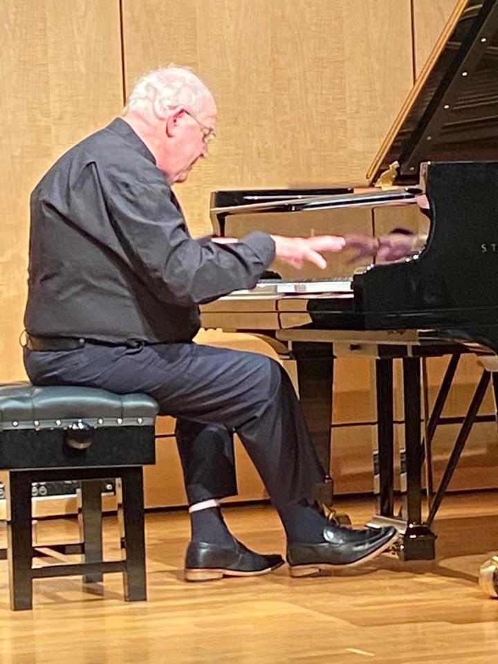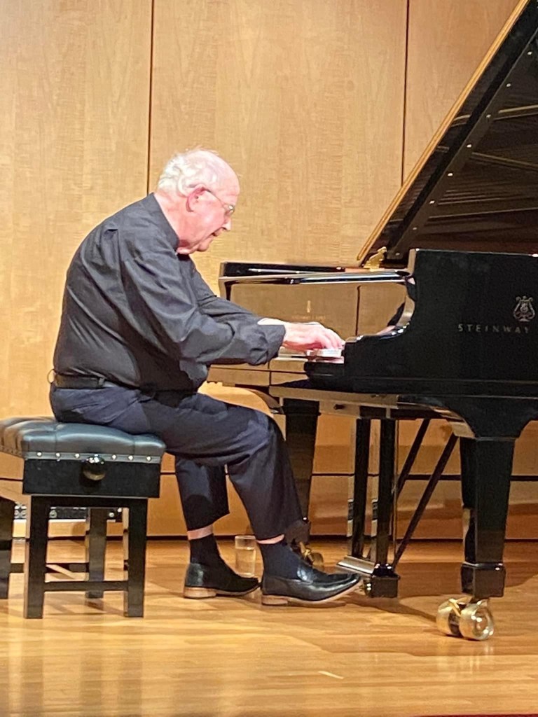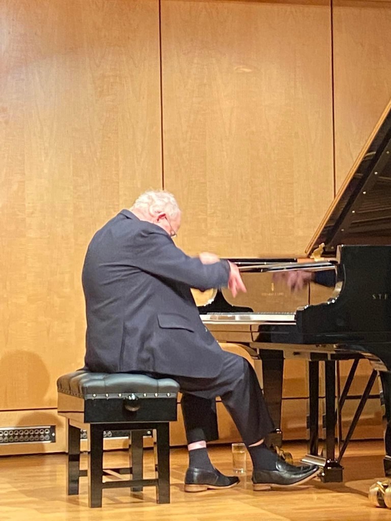 Nikolai Kapustin too was a most prolific composer who produced 20 piano sonatas ,6 piano concertos,many studies and 24 Preludes and Fugues in jazz style.He studied from 1956 until 1961 with Goldenweiser at the Moscow Conservatory.During that period he acquired a reputation as a jazz pianist, arranger and composer.He regarded himself as a composer rather than a jazz musician: “I was never a jazz musician. I never tried to be a real jazz pianist, but I had to do it because of the composing. I’m not interested in improvisation – and what is a jazz musician without improvisation? All my improvisations are written, of course, and they became much better; it improved them.”Julian played the 6th Sonata op 62 from 1991.Taking his jacket off he proceeded to let rip as he entered into this special jazz idiom.A beautiful bass melody in the Grave central movement with a final whispered chord at the top of the keyboard before the undisguised boogie woogie of the Vivace last movement.