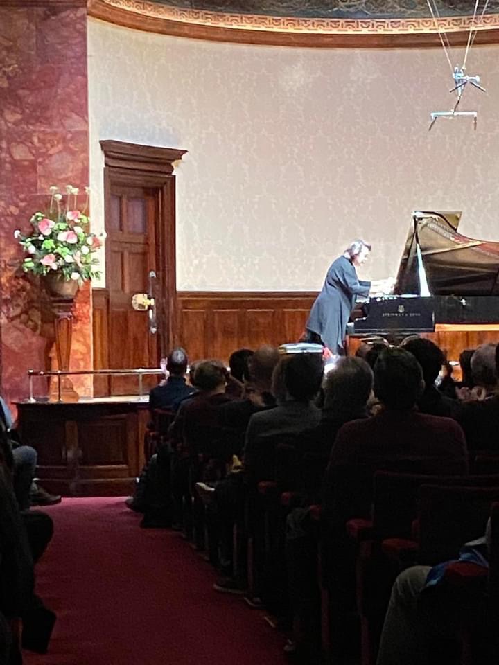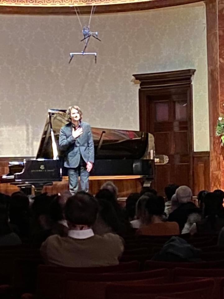 Ignas brought great beauty to many parts of the sonata.In particular the beautiful second subject of the first movement and the heart melting middle section of the Scherzo and Marche funèbre.Despite Schumann’s early criticism of lack of structure time has shown that it is a masterpiece of invention and of an originality that was at the time difficult to comprehend.The opening declaration is reworked in the bass in the development section as the fleeting opening of the doppio movimento is taken up too with the invention of a master craftsman and poet.Ignas chose not to do the repeat in the first movement which has been in discussion for many years as to Chopin’s real intention but he gave the entire movement a rhythmic energy and forward movement that just needed a little taming.The Scherzo too could have been more lightweight to allow a more architectural shape to the overall excitement and underlying rhythmic energy.There could have been a more architectural shape to the Marche funébre by a more judicious use of dynamics as Ignas with his great temperament gave us too much too soon.The Finale described as the wind over the graves is a perpetuum mobile of notes in unison.The revolutionary effect that Chopin wanted is in the notes themselves and needs no external help and above all very judicious pedalling.Ignas gave a performance of great effect which brought him great applause from a very select audience. I cannot help thinking,though,that a more controlled and clearer performance would have brought him an even greater ovation