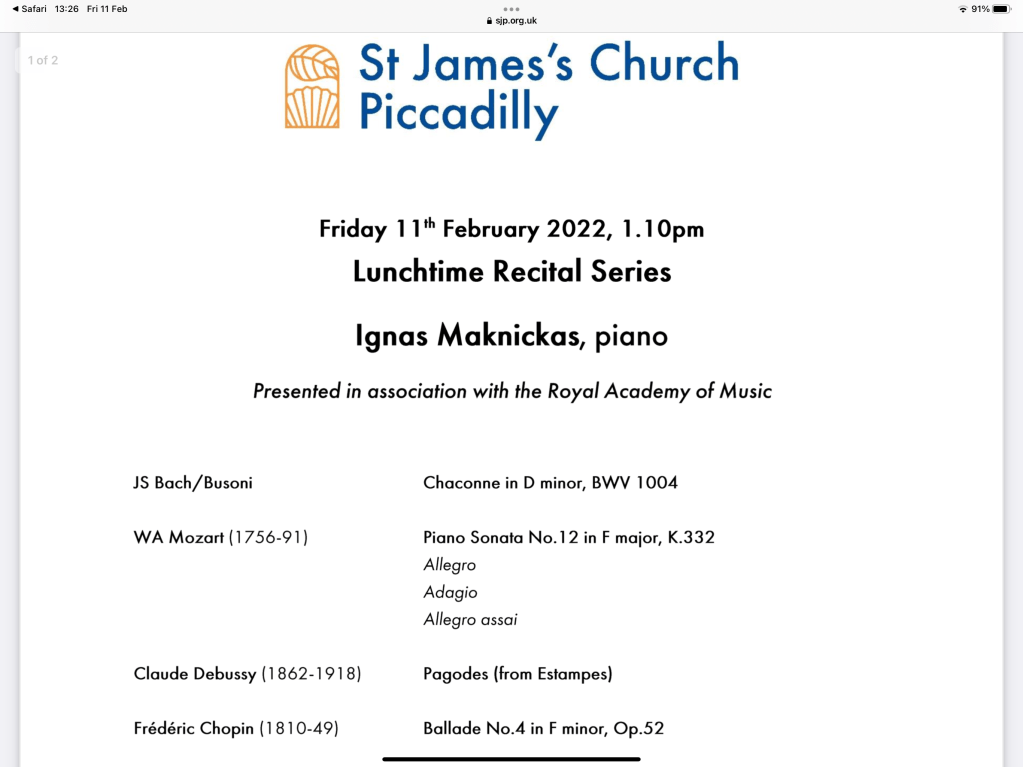 Some remarkable playing from Ignas Maknickas at St James’s Piccadilly that thanks to their superb streaming and still very fine Fazioli piano I was able to admire every facets of his great natural talent .