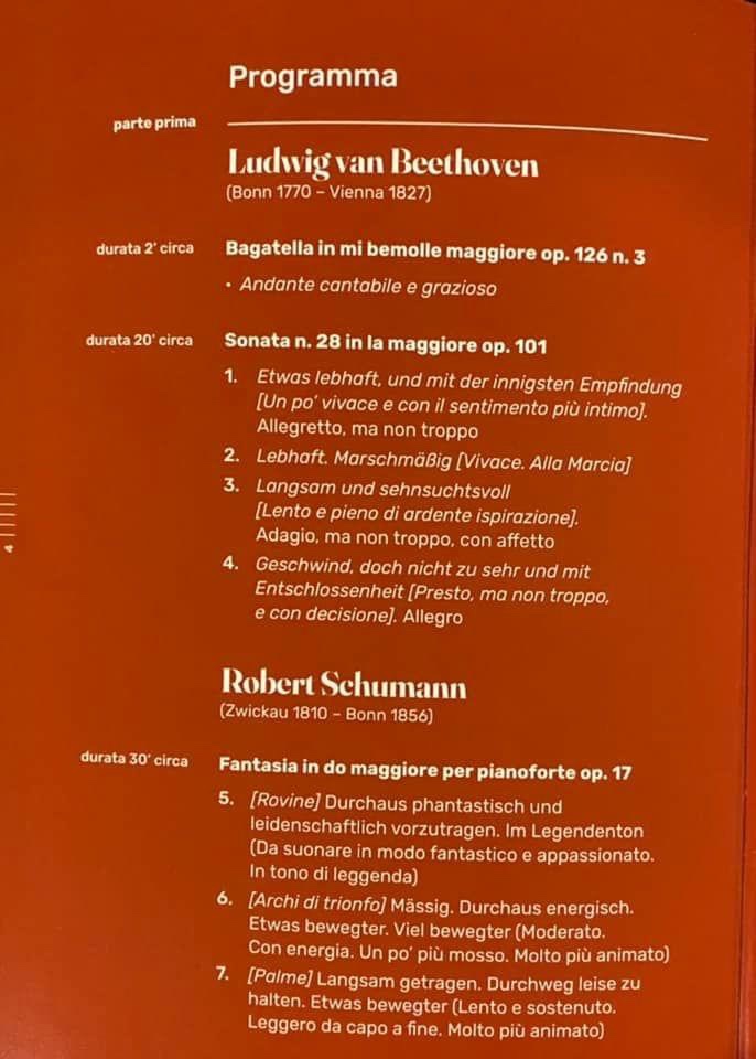 Op.109 There was a chiselled beauty to the sound that flowed so naturally as it was allowed to sing due to an extraordinary sense of balance and above all a scrupulous attention to Beethoven’s very precise indications in the score.Beethoven’s own pedal mark that links the first and second movement without a break- so often overlooked as the meaning of Beethoven’s pedal markings are dismissed by lesser mortals!.There was a string quartet texture to the last movement and a striking clarity to the turn so often thrown off as an aside but here every note given real meaning.There was a strikingly beautiful luminosity to the first variation where the deep bass notes were the very anchor of a variation that can often slip into waltz time!There was absolute control of texture in the second variation with no accommodating ritardando so there was no loss of rhythmic energy even in the teneramente contrasting episodes .The Allegro vivace third variation was like a volcano unleashed with superlative precision and a rhythmic drive I have only ever heard from Serkin .The fourth variation was like a ray of sunlight suddenly appearing on the horizon only slightly missing the off beat sforzandi and Beethoven’s own pedal indication in the long tremolando.It was at the end of this variation that I felt ended rather too abruptly to contrast with the authoritarian fugato that follows.The end of the fugato too could anticipate the tempo prima of the final extraordinary sixth variation,The same for the return of the theme where the etherial trills should dissolve more naturally into the opening theme almost like the opening of a magic door where an imperceptible gasp of astonishment could recreate this magic moment.Beethoven had marked after all one long pedal from the beautifully placed bass E that becomes the anchor for the first note of the return of the theme.