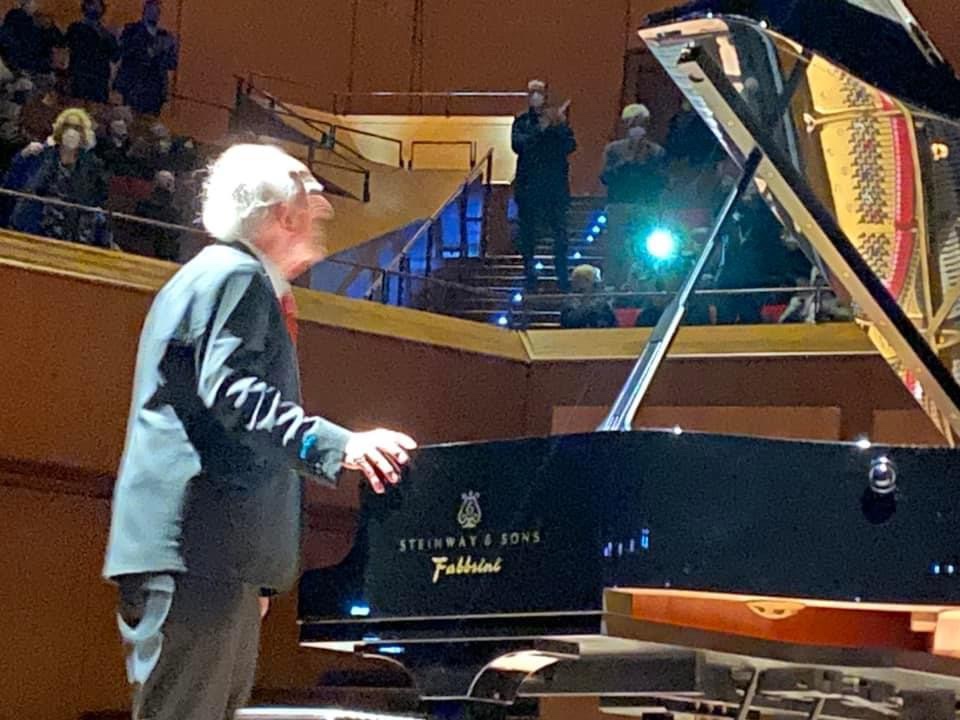 The Chopin Mazurka op 56 n.3 was a whole world in Pollini’s hands from ravishing beauty to intense introspection and stamping of feet. Ending with two mere gasps of astonishment.Three thousand people were holding their breath indeed. The Barcarolle – surely Chopin’s most perfect work was played together with the Fourth Ballade and the First Scherzo and were given very masculine no nonsense performances of great power and intellectual prowess. That an eighty year old man after almost two hours onstage could thank his audience by playing the First Ballade of Chopin was nothing short of a miracle. It was this conjuror of miracles that the Roman public had bade farewell to COVID worries as they came in their droves to pay homage to a living legend. It was nice to see the magnificent Fabbrini Steinway on stage and to know that Angelo Fabbrini was with us in the audience having given his priceless contribution to the recital by preparing an instrument fit for a King.