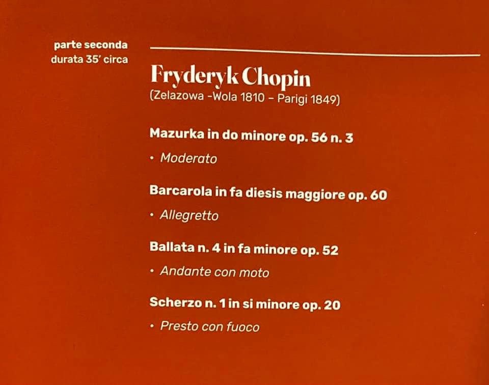 The fourth ballade one of the most miraculous creations even for Chopin was played with an aristocratic sense of style.Beauty and passion combined together with moments of ravishing beauty like the little cadenza before the final great build up.A sound that was always of a fluidity and never allowed to harden no matter the technical difficulty. If the coda was a little laboured it is because this young man must spend more time at the keyboard to eliminate also small blemishes that did occur during the recital.His extraordinary talent demands more hours to turn a wonderful picture into a masterpiece.He is a great artist in the making and must suffer more for his quite considerable artistry.