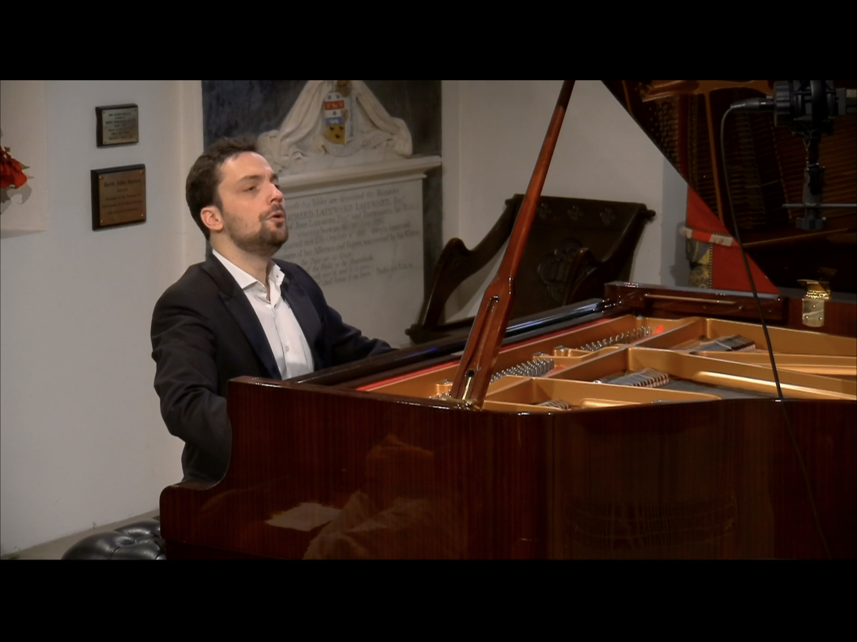 Some remarkable playing from Ignas Maknickas at St James’s Piccadilly that thanks to their superb streaming and still very fine Fazioli piano I was able to admire every facets of his great natural talent . A grandiose Bach Chaconne with such sumptuous sounds not only of richness but also of golden sweetness never forsaking the monumental architectural shape that Bach had so miraculously woven on a single violin. Here in Busoni’s extraordinary reworking it is reborn for the solo piano with the same grandeur as the original. Brahms too made a magnificent transcription for the left hand alone giving it the same transcendental difficulty as the original conception.But when played with the virtuosity and richness of sound as today it becomes more than a transcription but a highly original work as if born for the solo piano. I remember as a student being bowled over by the recording of Michelangeli and locking myself away for a week to learn it before playing it to my teacher Sidney Harrison.He could not believe what progress this schoolboy had made over night. It was the piece that earnt me a scholarship to study with him at the Royal Academy. Can it just be coincidence that this concert is promoted by my old Alma Mater where Ignas is a master student?!