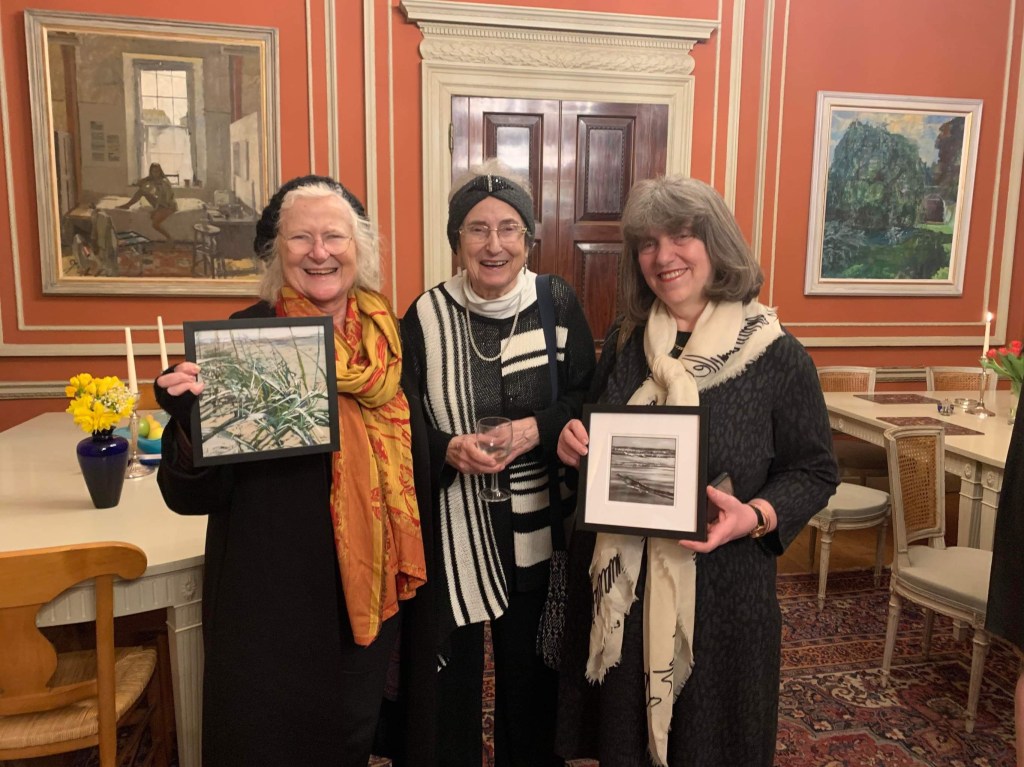 Dr Annie Coxon Annette Morreau Jessie Harrington with the auctioned pictures that raised over one thousand pounds for the Help Ukraine Fund