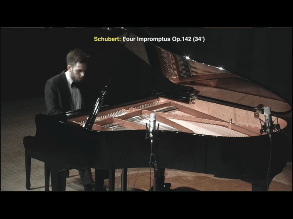The Schubert Impromptus are a series of eight pieces for solo piano composed in 1827. Schubert was born in 1797 and died in Vienna, aged 31, on 19 November 1828, at the apartment of his brother Ferdinand. The cause of his death was officially diagnosed as typhoid fever , though other theories have been proposed, including the tertiary stage of syphilis.It was near the grave of Beethoven, whom he had admired all his life, that Schubert was buried at his own request, in the village cemetery of Wahring on the edge of the Vienna Woods.A year earlier he had served as a torchbearer at Beethoven’s funeral.The Impromptus were published in two sets of four : the first two pieces of the first set were published in the composer’s lifetime as Op. 90; the second set was published posthumously as Op. 142 in 1839 (with a dedication added by the publisher to Franz Liszt).The third and fourth pieces of the first set were published in 1857.As the first and last pieces in this second set are in the same key (F minor) and the set bears some resemblance to a four-movement sonata it has been suggested that these Impromptus may be a sonata in disguise.It was Schumann and Einstein , who claim that Schubert called them Impromptus and allowed them to be individually published to enhance their sales potential.However, this claim has been disputed as it is also believed that the set was originally intended to be a continuation of the previous set, as Schubert originally numbered them as Nos. 5–8.