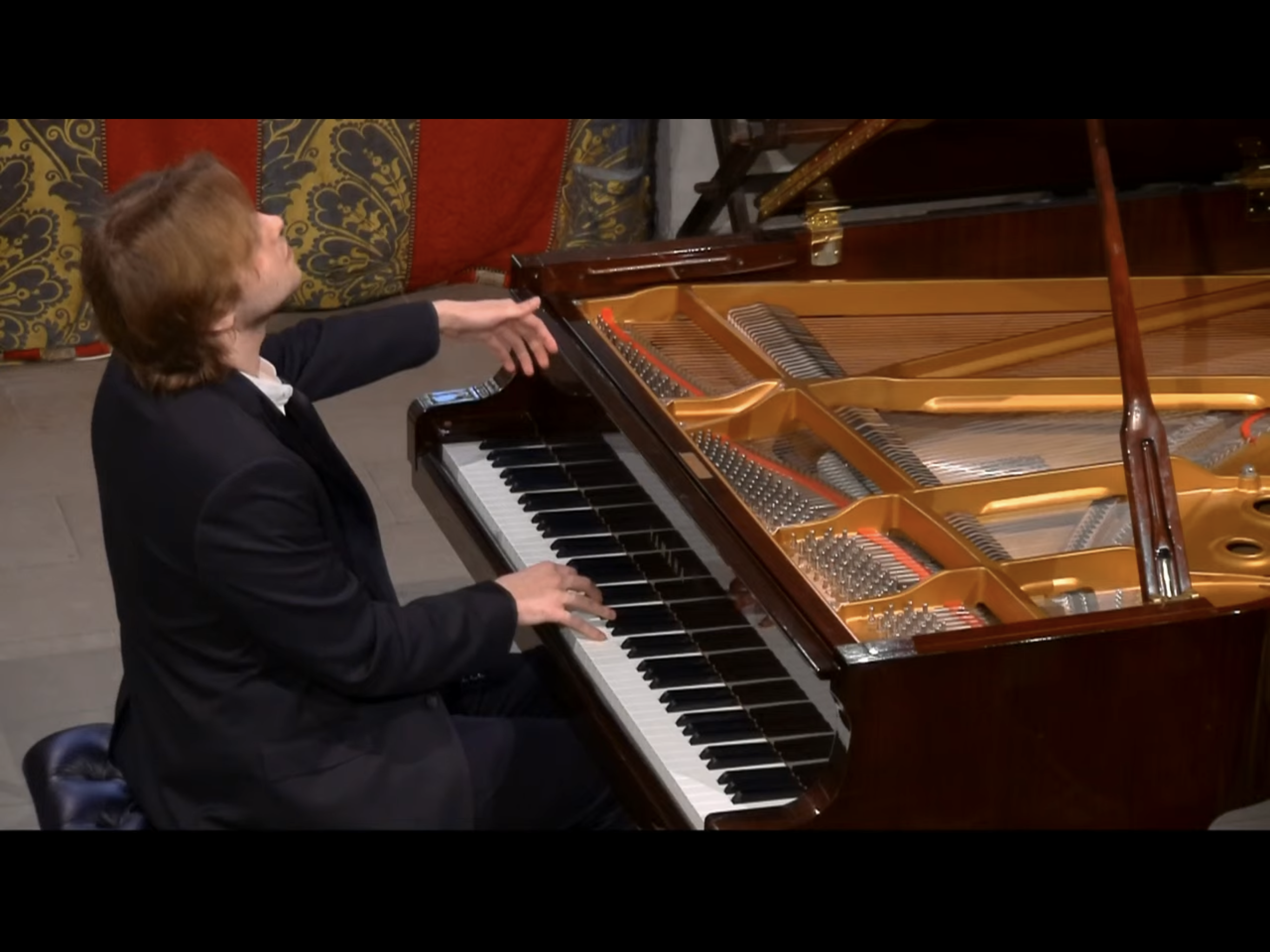 Having explained the significance of keys in Bach’s period where the key of G had a great meaning and the few times it entered the minor key was of great significance .There were some memorable moments from this very fine musician who every so often revealed the soul and sense of fantasy that is in every true artist. The end of the 21st variation disappearing into the infinite as he left the pedal on for the whispered entry of the sun appearing on the distant horizon in the 22nd. The glorious glissando type effect of the ornamentation in the ritornello of the French Overture – the half way mark where things start to get more serious and involved as we move to the glory of the 29th variation. The great organ stops in this penultimate variation resounding with such majesty on this magnificent Steinway. But then a moment of breathtaking beauty as the Quodlibet was allowed to enter in a mist of sound as these two popular melodies that Bach adds build to a passionate climax only to die to a whisper. Leaving the pedal ,a masterstroke that I have only experienced from Andre Tchaikovsky ,allowing the return of the aria to literally float on the magic cloud of G.