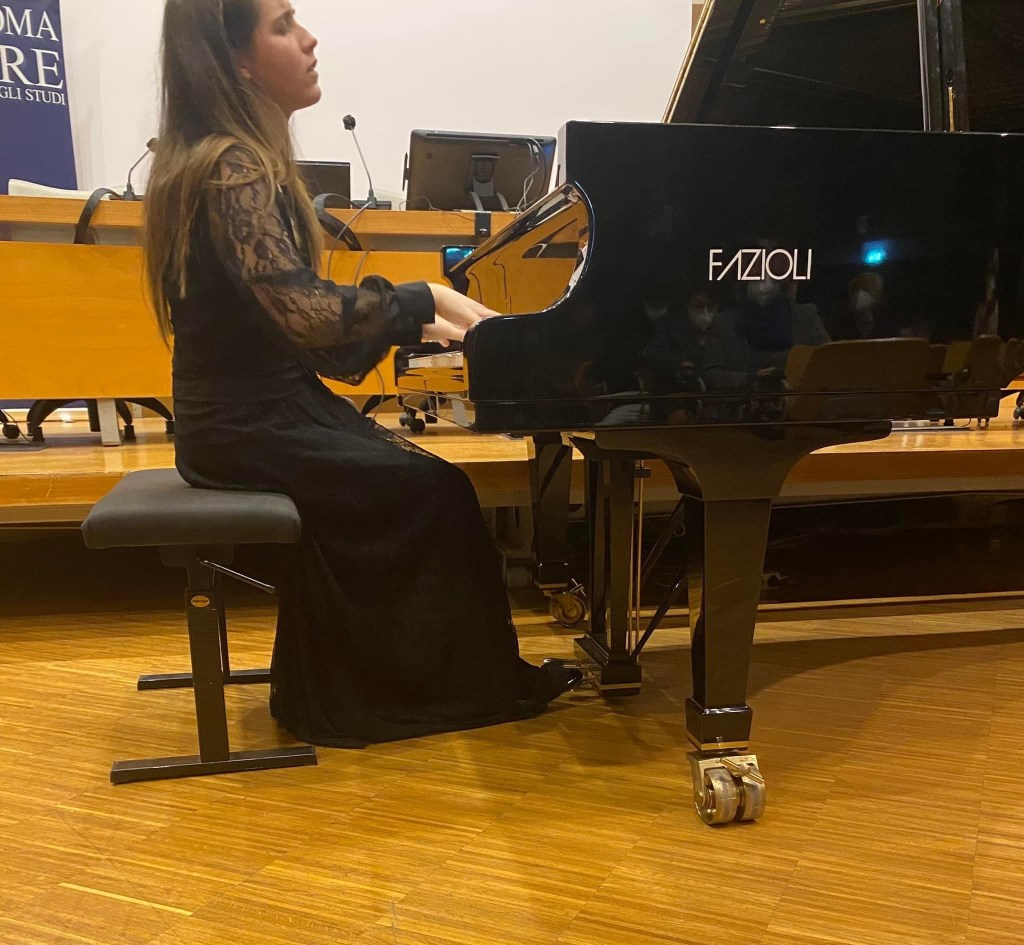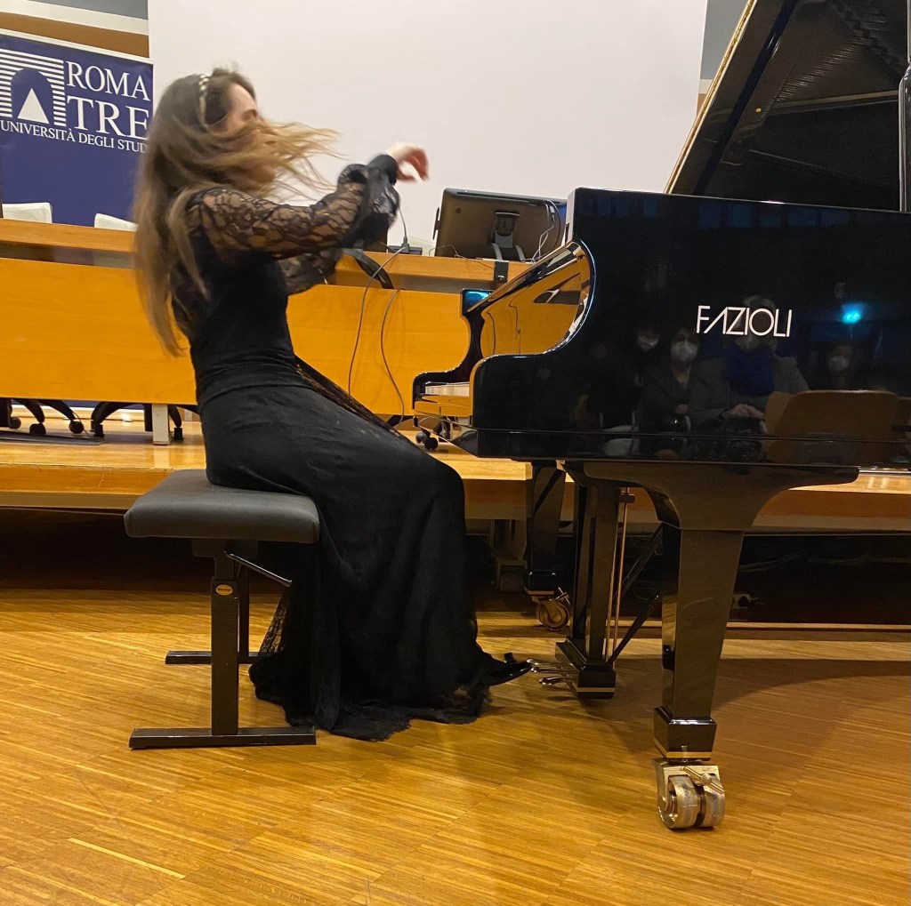 Sarah Giannetti making her debut for Roma Tre University with a passionate outpouring of Romantic masterpieces.I had heard Sarah four years ago when she gave a full blooded account of Rachmaninov’s 3rd Concerto when only in her early twenties.I remember it was impressive for the passion and fearless courage with which she threw herself into the fray and came out a winner!