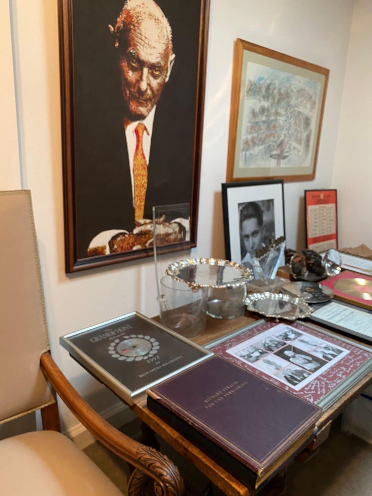 JunLin with Mrs Alexeev – Tatyana SarkissovaThe remarkable Studio of Sir George SoltiCristian Sandrin in discussion with Dmitri Alexeev with Petar Dimov and Damir Durmanovic in the background – some of the many pianist present to admire the artistry of JunLinJunLin rushing back to the Wigmore Hall where he was in the middle of a chamber music competition – this recital was his lunch break!The St John Passion open as Sir George Solti had left it in his studio.