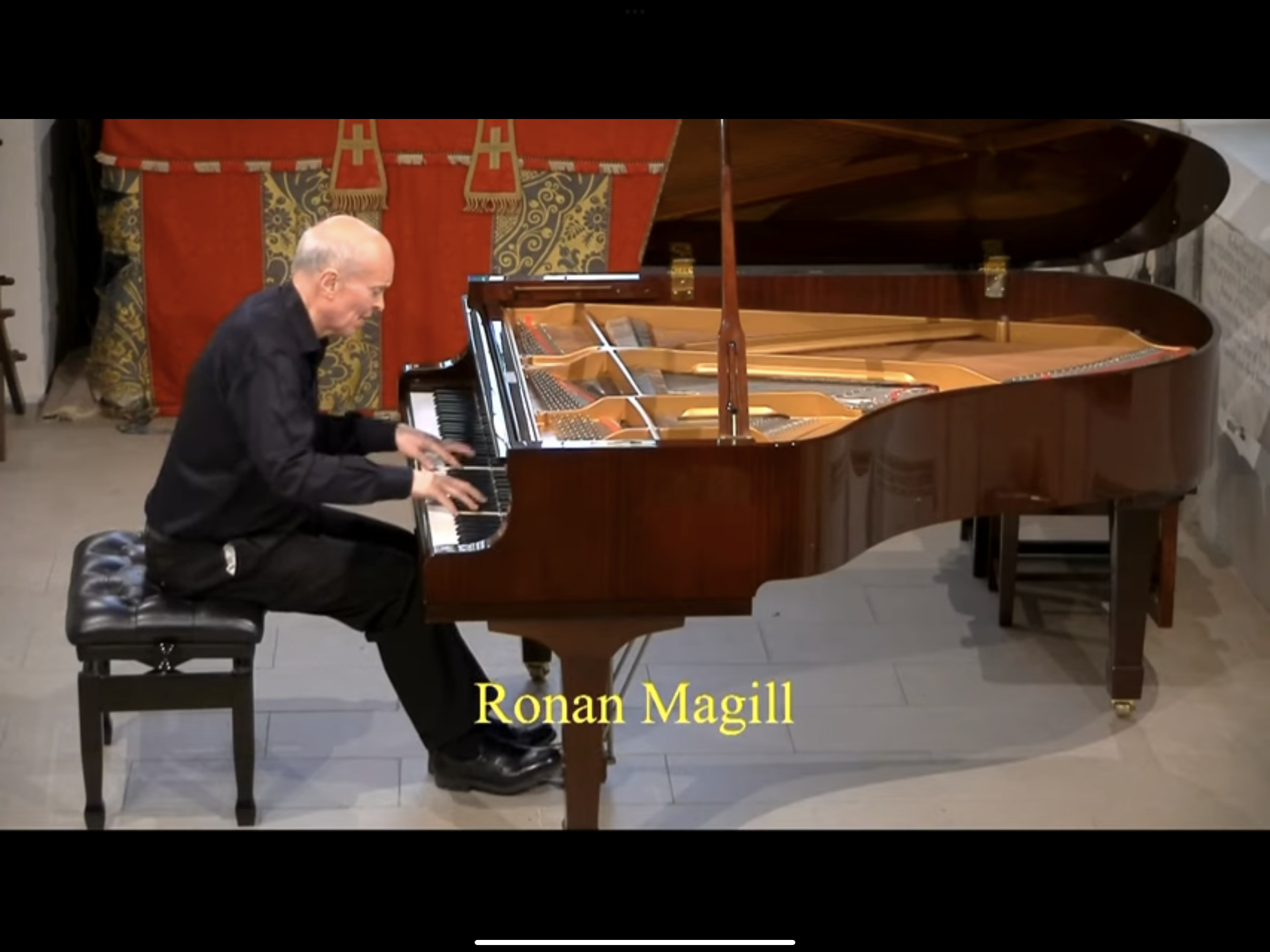The pianist and composer RONAN MAGILL (born Sheffield 1954) was, as a nine year old, chosen to be one of the founder pupils of the Yehudi Menuhin School. Later after a period at Ampleforth College, and on the advice of Benjamin Britten, he went to the Royal College of Music working with David Parkhouse and later John Barstow, and winning all the major prizes for piano and composition. After his Wigmore and South Bank debuts (Brahms 2 nd Concerto) in 1974, and again on Britten’s advice, he moved to Paris to study with Yvonne Lefebure at the Conservatoire, and then remained in Paris for a number of years, performing regularly both in concert and on TV and radio, and also receiving advice from Pierre Sancan, and Nikita Magaloff and Arturo Benedetti Michelangeli in Switzerland. In 1985 Magill won ist Prize in the 1 st “Milosz Magin” International Competition for Polish Music, followed by a European tour, and then after returning to the UK , he won the 3rd British Contemporary Piano Competition which a UK tour and concerts on BBC Radio 3. In recent years Magill has been performing in the UK, USA (Rachmaninoff 3 rd Concerto) and most recently in Japan where he has been living since 2013 performing in many cities. He returned to the UK in April 2021 and gave a memorable recital at St Mary’s Perivale last year.