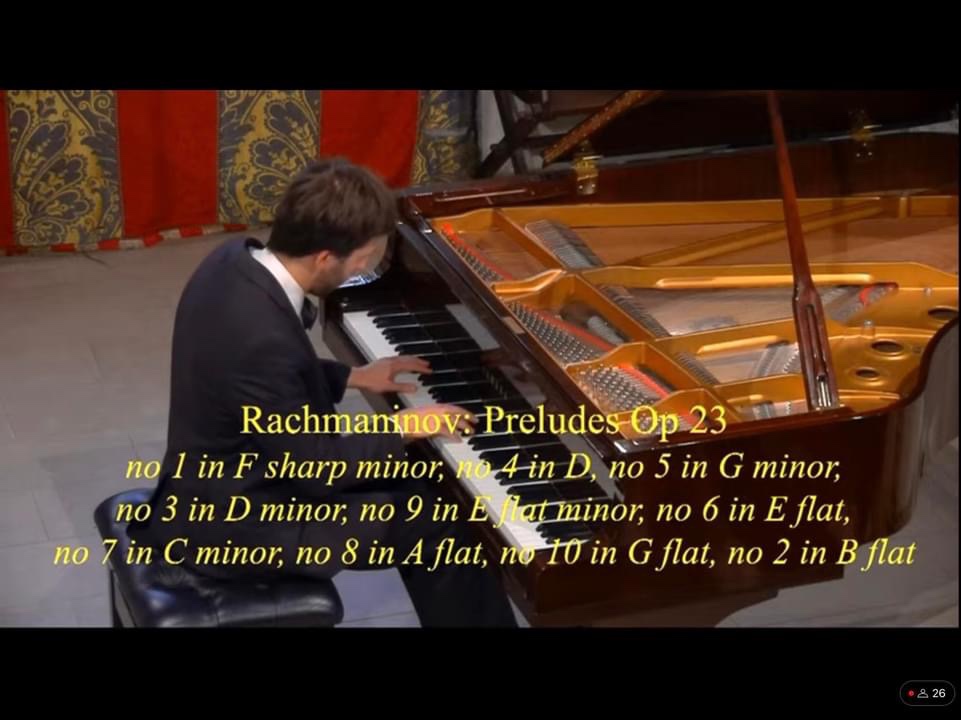Damir simply explained that the preludes had never been written by Rachmaninov with the idea to be played all together and so he had tried to link them by key relationships to make a more satisfying whole.