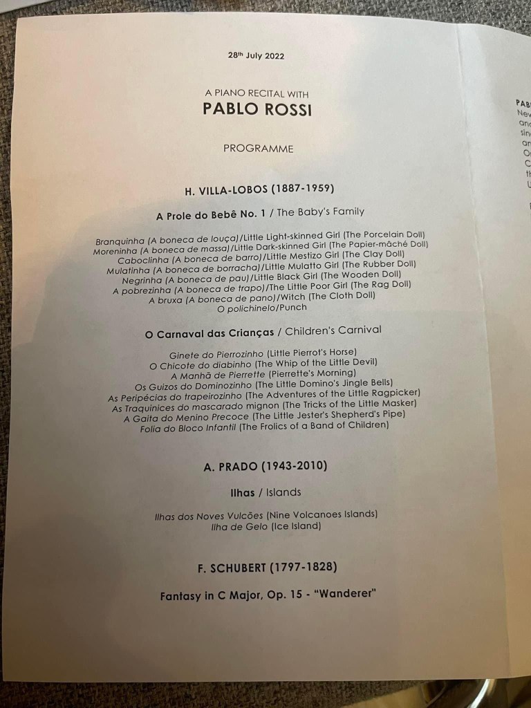 Pablo did more than that today as he convinced us of the wondrous colours and aristocratic simplicity of Villa Lobos’s two Children’s Suites.