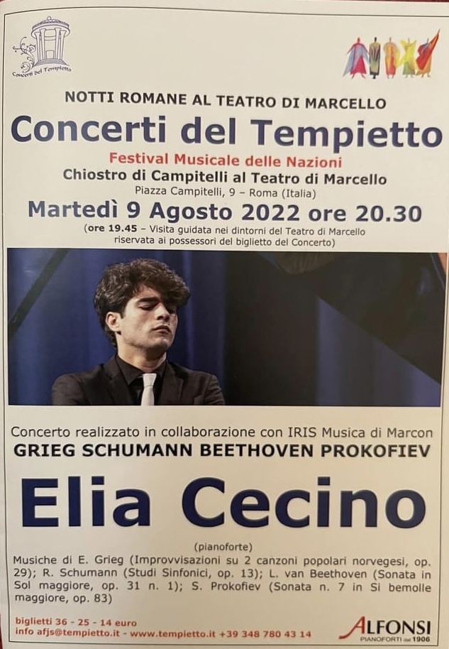 His performance of Tchaikovsky’s First Piano Concerto at the Ghione Theatre will be his next appearance in the Eternal City on the 16th September following on from the Grieg Concerto in Bergen that is sure to crown yet another triumph for this young virtuoso