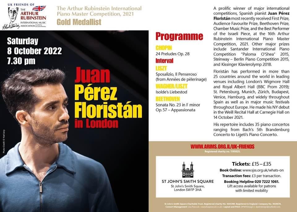 An amazing display of ‘love’ from the winner of the 2021 Artur Rubinstein competition.The young Spanish pianist Juan Pérez Floristan I had already heard when he gave his debut recital at the Wigmore Hall a few years ago as winner of the 2015 Santander Competition.I had noted then his very individual personality but also the ravishing beauty of his playing.He had begun his London debut recital in 2017 with the Liszt Sonata which I thought a very outlandish and maybe even a presumptuous thing to do .That is until I heard it and he completely convinced me.