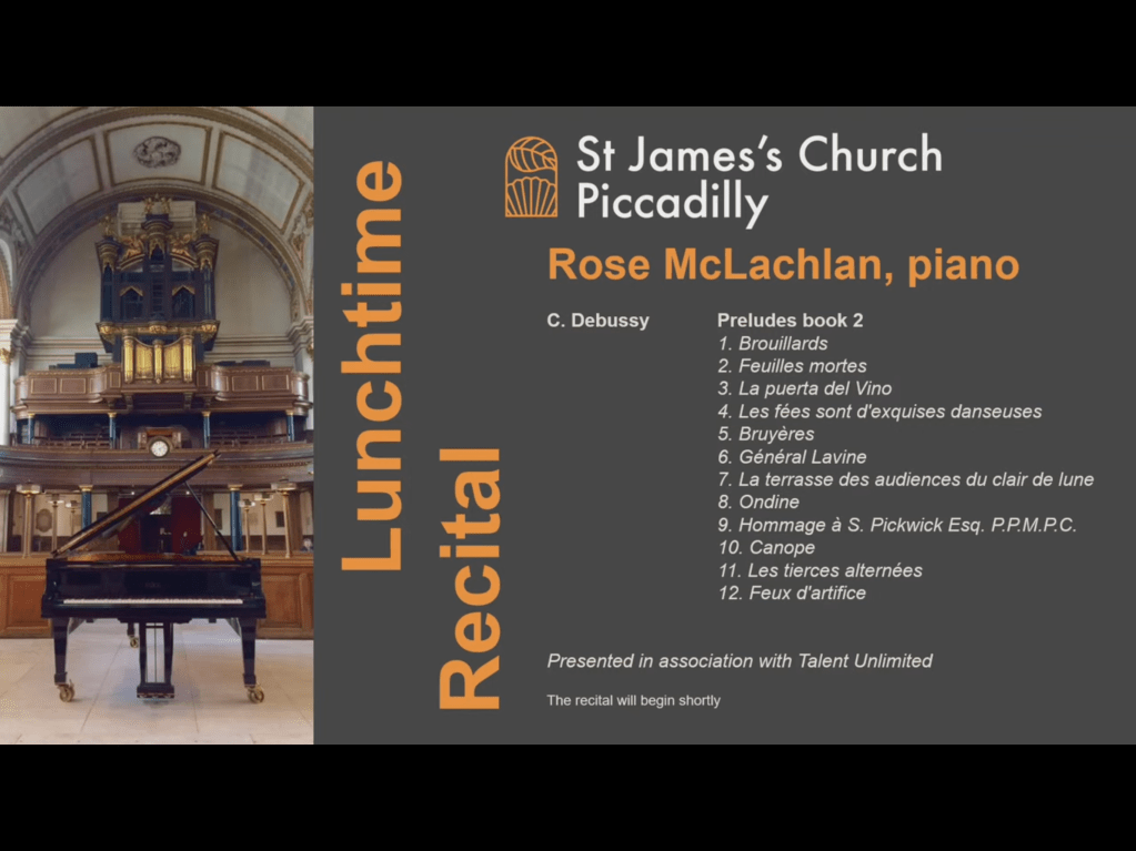 A Rose is always a Rose but what a Rose we heard today as Rose McLachlan standing in at short notice for her colleague Giulia Cotaldo she gave a sumptuous performance of Debussy’s elusive Preludes.It was Giulia who earlier in the season stood in for the indisposed Elisso Virsaladze ,playing Schumann’s Piano Concerto for the 100th Anniversary celebrations of the BBC Philharmonic.Who says there are so few superb women pianists!It was Rose’s continual circular body movements ,barely perceptible, that allowed her to shape without any ungrateful hardness ,the elusive,evocative,sumptuous and capriciously mischievous sounds that Debussy magically could depict on the piano From the mysterious opening mists,the sumptuous desolate depiction of dead leaves or the sheer radiance of La Puerta Del Vino.The featherlight dancing fairies who almost were allowed to come into the open before the extraordinary goings on of General Lavine. Has the moonlight ever shone so radiantly as in Roses hands today or the impish Ondine played as elegantly as I well remember Rubinstein beguiling us with the simple aristocratic magic that he could seduce his audiences with. Poor Mr Pickwick Esq with Debussy poking fun but the last laugh was on him!Canope was Fou Ts’ong’s most cherished of the preludes for it’s depiction of solitude and desolation with so few notes. Rose’s transcendental command of the keyboard but above all of the musical values allowed the double thirds to shimmer and flow from her magic fingers in a Prelude that was later to be developed into his last and for some greatest work for the piano the Etudes. And fireworks there certainly were at the end with such magical sounds and amazing control of the keyboard allied to an imagination and sense of colour that had been so apparent in this superb performance.