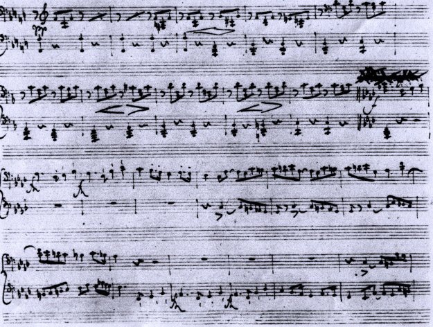 autograph in the Austrian National Library showing a portion of the secondo (left-side) part from the fourth movement