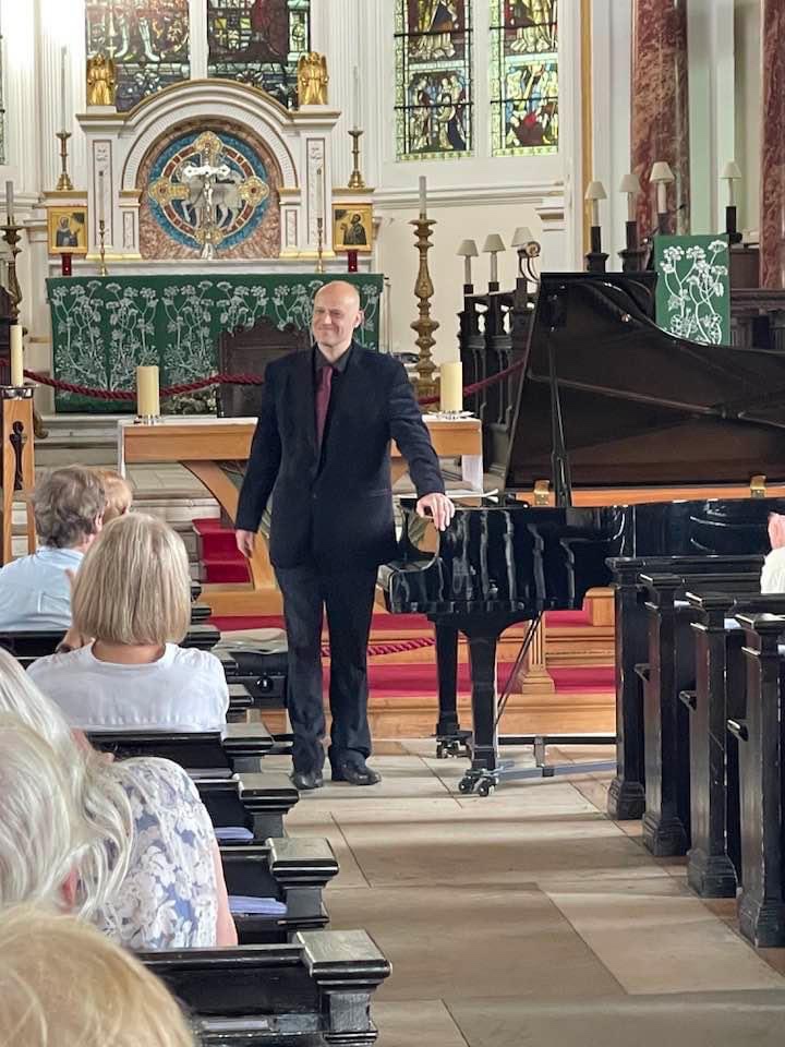 Wonderful to be back in the church where I was married in 1984 and to hear a piano recital from a pianist highly esteemed by that connoisseur Hugh Mather of St Mary’s Perivale,but who I have never had the opportunity to hear until quite unexpectedly today.