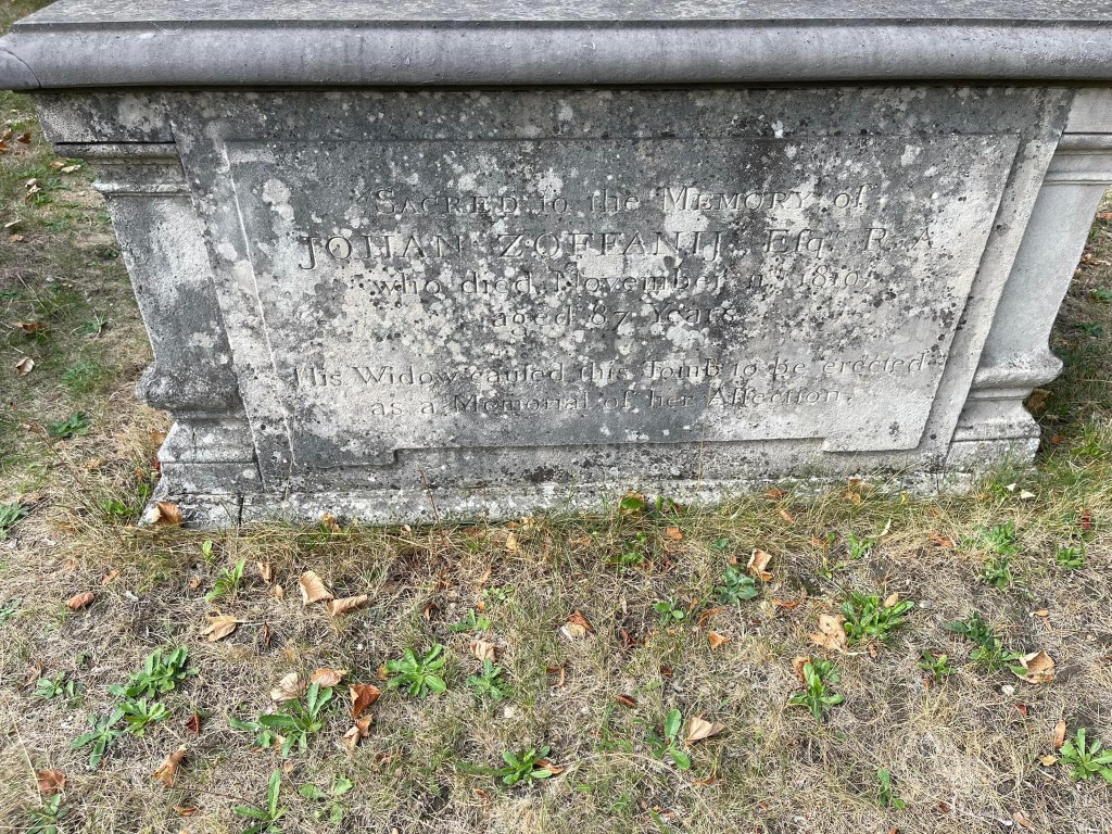At Anne’s churchyard overlooking Kew GreenThe tomb of Zoffany he died in his home at Strand-on-the-Green on 11 November 1810. Johan Joseph Zoffany, RA (born Johannes Josephus Zaufallij; 13 March 1733 – 11 November 1810)[1] was a German neoclassical painter who was active mainly in England, Italy and India.My wedding photo on the steps of St Anne’s in 1984Inside St Anne’s 28 July 1984Viv McLean