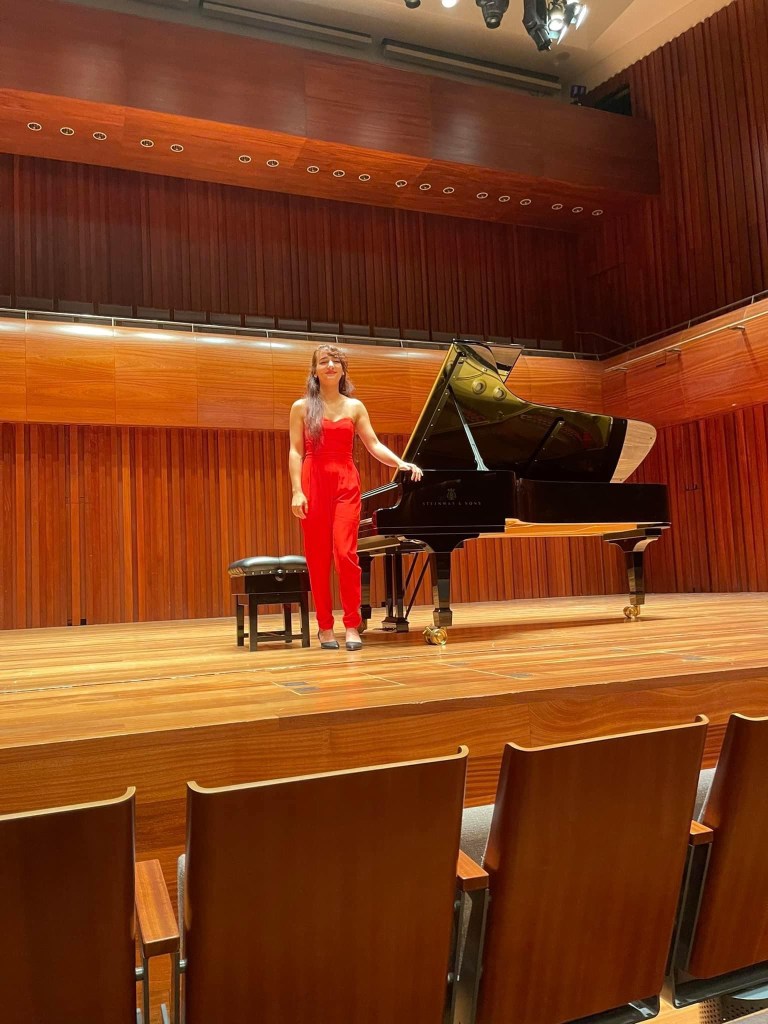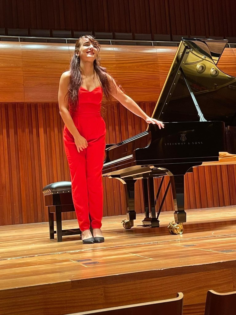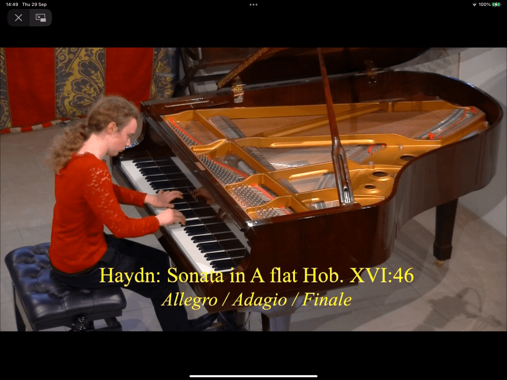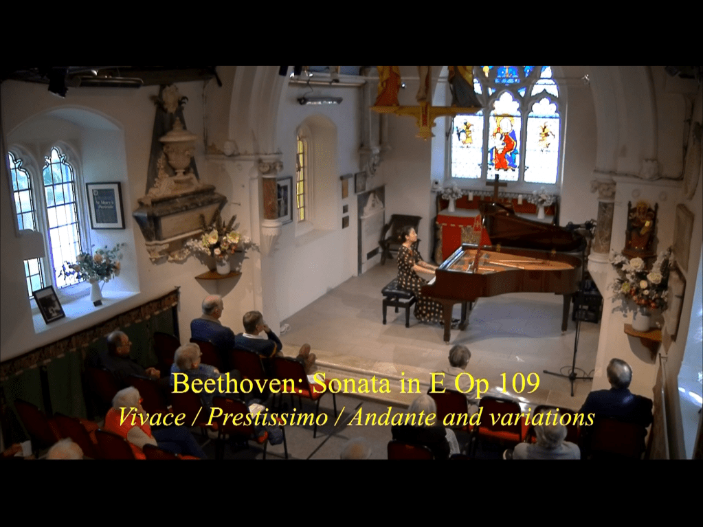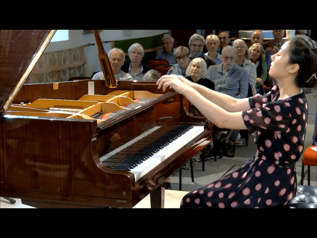 There was a crystalline clarity from the very first notes of the Mozart Sonata in C K.279. A natural flowing tempo and a ravishing sound in the Andante and a scintillating final Allegro where the music spoke with such character and style.Then the surprise as she was to sing two of the Frauenliebe und Leben by Schumann accompanying herself on the piano.What a ravishing voice and how the piano and voice became one long beautiful line.What power in her voice too – a miracle of how she could use her diaphragm seated as she was at the piano.The true revelation was to come with one of the most sensitive and beautiful accounts of Chopin’s 24 Preludes that I have ever heard.She played only the last 12 and I long to hear her play the complete set .The fluidity of the sound and the kaleidoscopic colours were worthy of the Matthay school that was based on the infinite gradations of tone in every single note.At the end I had to go up to her and exclaim how much she obviously loved the piano.The 21st Prelude I had never heard with such magical sounds – she was surprised because she said that was her favourite prelude.The 20th too,how she had built up the sound from the bass with the majestic C minor chords disappearing layer by layer into the infinite.The three final ‘D’ s played not like the usual sledgehammer but like the reverberation of the single note just allowed to vibrate without being bashed out ever more triumphantly.