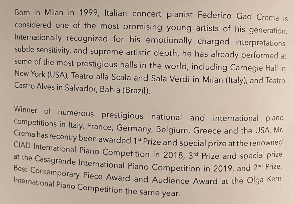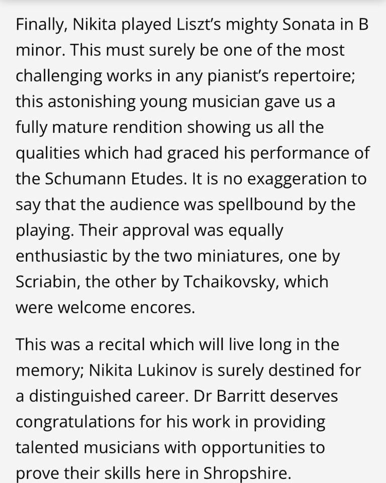 Superb performances from this seventeen year old Japanese artist.Having created an enormous following at the age of only eleven when his first performances from the Van Cliburn competition started to appear on internet platforms .Many performances have since followed including a Rachmaninov 3rd Piano concerto at the age of 15 from Tokyo.More recently his triumph at the Hastings International Competition will give him the opportunity to make his London debut next year playing Beethoven 4 with the Royal Philharmonic Orchestra.Studying with William Naboré at the International Piano Academy Lake Como he leaves his show pieces to study the great classics of the piano repertoire.And so it was that Shunta played the 4th Partita by Bach and the Etudes Symphoniques by Schumann.The surprise especially for me was of the encore of the 4th Nocturne by Fauré.It was here that the heavens opened and the glorious sounds and streams of radiant light illuminated this Yamaha concert grand and kept us riveted to our seats with the ravishing beauty and subtle aristocratic poise of this young artist .The Bach Partita had been scrupulous in its attention to detail but it was the absolute clarity and the dynamic contrasts that were so remarkable.Keeping the style and shaping the long lines with the subtle inflections of a singer but with an underlying rhythmic energy that created an architectural shape from the beginning to the end.The Schumann was played with sumptuous sound and a technical mastery that allowed the poetic content to shine through even amongst the most transcendental difficulties.The little posthumous studies were beautifully integrated into the whole and gave an oasis of peace and calm amongst the more passionate of the eleven original studies. https://christopheraxworthymusiccommentary.com/2022/05/23/shunta-morimoto-a-colossus-bestrides-villa-aldobrandini-as-it-had-when-liszt-was-in-residence/