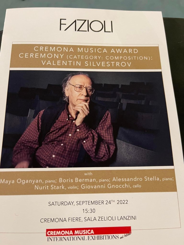 And so to catch the plane back to reality…….-little did I know that in the taxi to Linate there would be with me Valentin Silvestrov and family …..just another of those surprise encounters that make Cremona Musica in the hands of Roberto Prosseda a unique world wide link