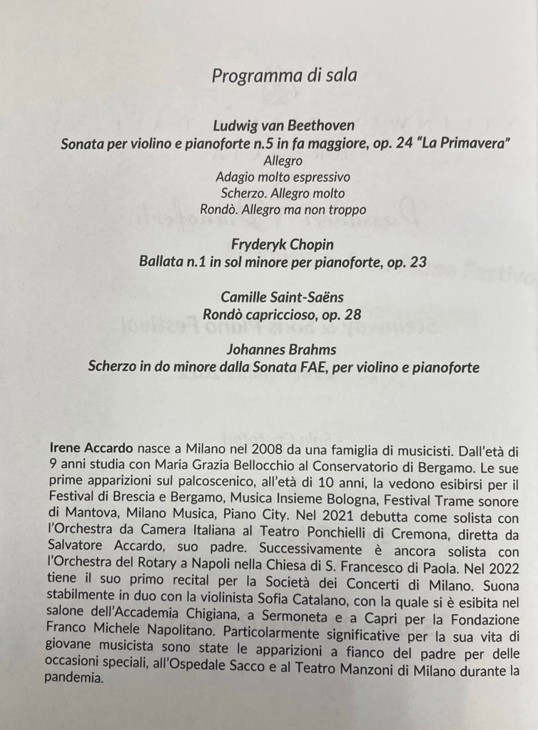 On the way to the award ceremony concert of Valentin Silvestrov I could not help but be drawn to the name of Accardo playing in the Steinway Gallery of Passadori.I had just time to see these two young ladies and listen to their beautiful fresh and youthful performance of Beethoven’s ‘Spring’ Sonata .Irene Accardo’s solo performance of Chopin I was sorry to miss but I will look out for this very talented daughter of one of the great violinists of our time.