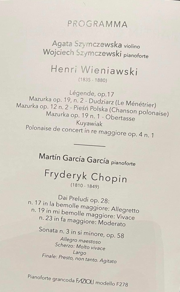 Celebrating the Polish Music Heritage with the winner of the Wieniawski 2006 International Violin Competition playing violin show pieces by Wieniawski.Agata Szymczewska and her brother Wojviech Szymczewski gave scintillating performances ending with the well known Polonaise de concert op 4 n.1-A perfect duo partnership allowed them to play so idiomatically the lesser known Mazurkas of this Polish virtuoso violinist, composer and pedagogue who is regarded amongst the greatest violinists in history.When his engagement to Isabella Hampton was opposed by her parents, Wieniawski wrote the Légende Op. 17 that opened the concert tonight and it is this work that helped her parents change their mind, and the couple married in 1860.