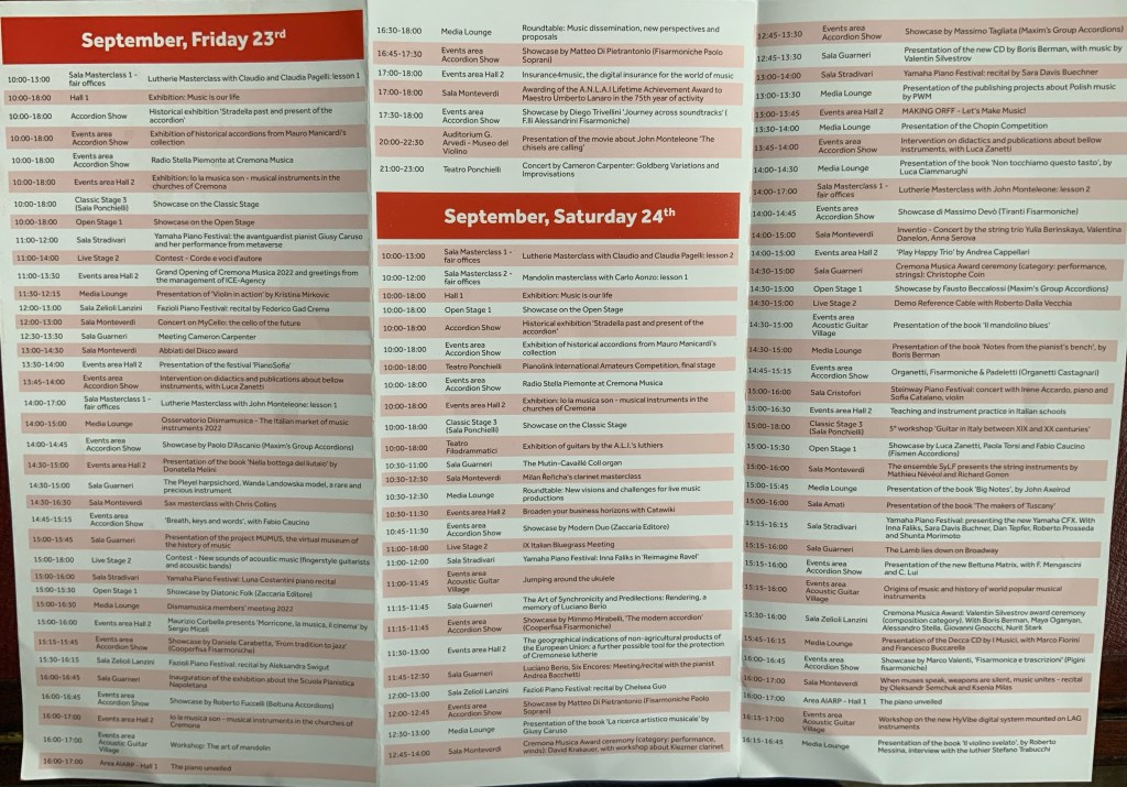 180 events in only three days but that is not all because Cremona becomes a link with an exchange of ideas and encounters that will reverberate around the globe long after it has made all these introductions possible .An introduction to the dance indeed ………choosing one’s partners to suit one’s style and taste with a global network that surely must be unique.