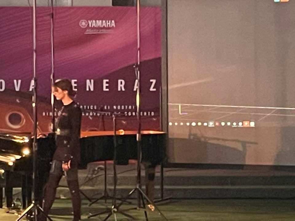 The Disklavier is a hybrid piano with a MIDI system, which allows you to record the performance of the pianist, including the dynamics and the movement of the fingers on the keys: the piano gesture is, therefore, observable and audible in all its bodily expressiveness.This mechanism was used during the initial phase of the concert: in fact, the Disklavier will play, independently, a piece pre-recorded: the first chords of the first movement of the Memento Mori collection, by the Belgian composer Wim Henderickx (1962); then,she entered the scene with a suit and markers, essential for the motion capture system to identify my movements, creating her avatar. In this way, she was projected into virtual reality and interacted with the piano’s string-board, while the piano continued to play the MIDI.