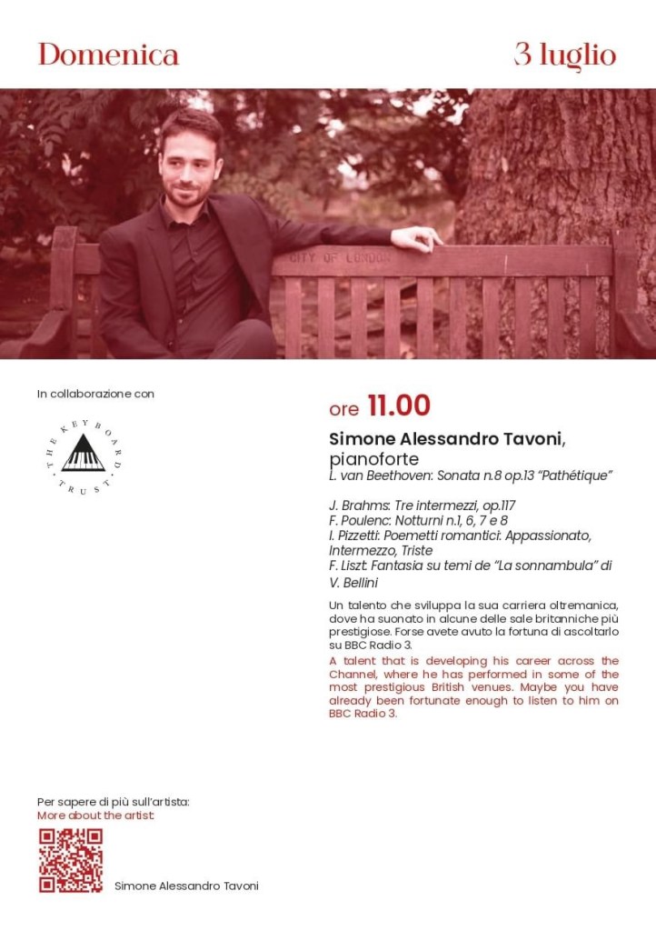 On the 3rd July Simone Tavoni played his long postponed recital in Spoleto in Menotti’s House in the main square overlooking the Cathedral thanks to the collaboration with Umberto Jacopo Laureti