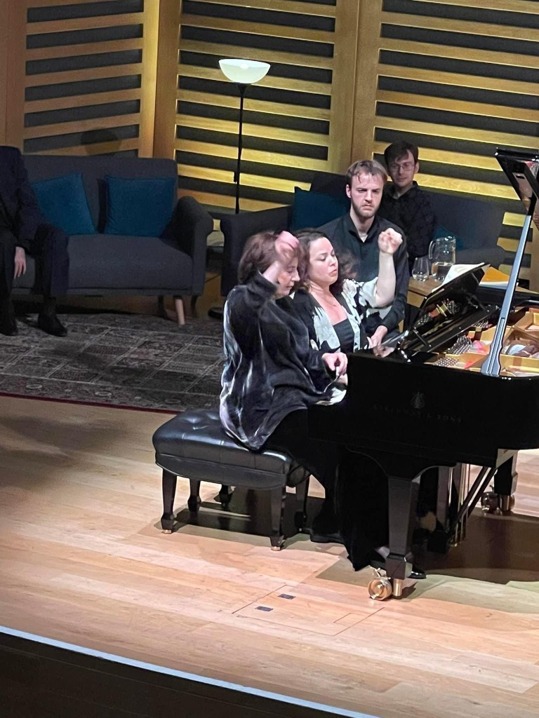 The stage of Kings Place was transformed for the evening into an intimate salon of sublime music making with a Schubertiade of eight hands on one piano.