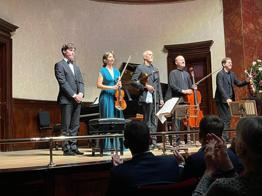 A magnificent performance of the Brahms Quintet with the present winner the 23 year old Canadian Jaeden Izik Dzurko and the magnificent Casals Quartet.Jaeden an excellent partner to his magnificent colleagues.What a marvel to see Vera Martinez- Mehner rise out of her seat as she and her colleagues watched each other waiting to see what the other would do.Like the Kelemen Quartet with Peter Frankl recently they had moved the standard shape of the quartet to fit this passionate score .First Violin and Viola on the outside with cello under the lid of the piano and what a wonder he was too!Looking so expectedly at the pianist as this young man was too …..music making of infectious improvisation.The viola waiting to pounce too as the young pianist joined in this wonderful circus act.An act where they were all on the high wire risking all for the sake of the music …….and what music.We certainly needed another interval after that emotionally exhausting journey.