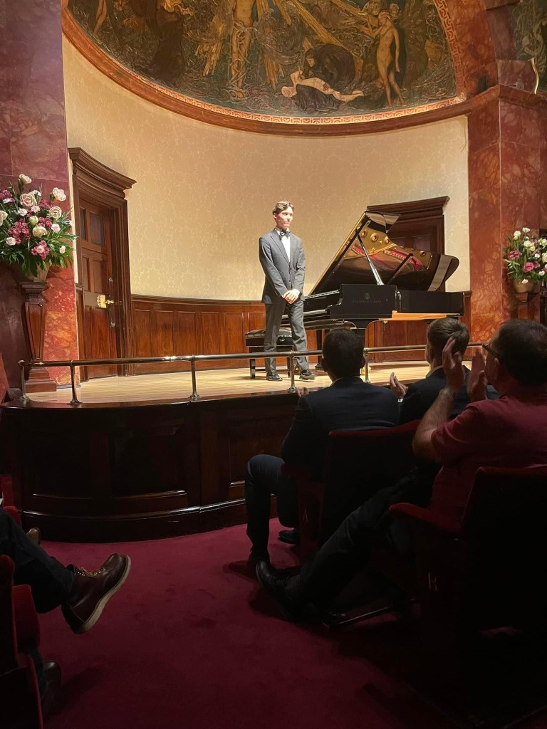 At only 23 Jaeden gave greatly assured performances .Albeniz was remarkable for the rhythmic insistence of the hypnotically repetitive opening giving way to hauntingly mirrored utterances of beguiling insinuation before bursting into glorious flames of unbridled passion.The Rachmaninov is notoriously difficult to master with an architectural line that must lead the way and not be distracted by the enormous amount of notes that embroider it’s path.It needs a kaleidoscopic palette of colours to distinguish between the actual line and the streams of gold and silver that embroider it.Jaeden’s command of the transcendental difficulties was remarkable as was his sense of architecture but the driving brooding opening and passionate obsessive declarations were absorbed into a clarity of detail that needed to be hidden in mystery like a cauldron of boiling water always present and about to burst I have only heard one truly successful performance of this and that was from Alexandre Kantarow in a concert streamed live during the pandemic from the Philharmonie de Paris.Martin Garcia Garcia winner of Cleveland came close too in Cremona the other day.He told me that this once very neglected Sonata was now being played by many top pianists at Juilliard in New York these days.We have been over saturated with the second sonata since Horowitz’s staggering performance that he astonished the world with in one of the concerts of his Indian summer .