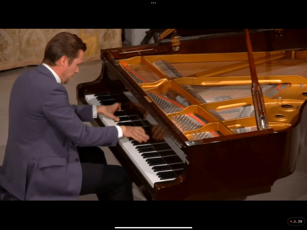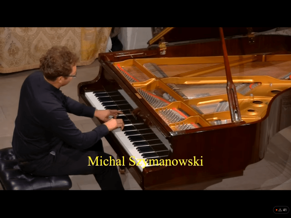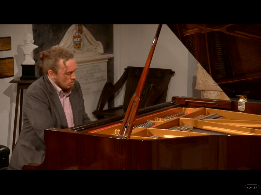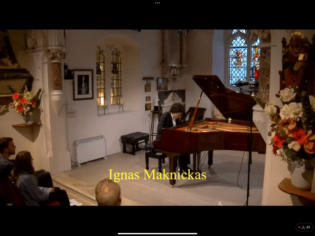 It was Rokas Valuntonis who closed the festival late on Sunday evening.A performance of the F sharp nocturne op 15 that Rubinstein used to play with timeless ease and beauty.Rokas unravelled the beautiful middle episode with the same ease and with a enviable liquid sound .It was the oiled ease of his playing and radiant sound that reminded me of Geza Anda.A technical command of the keyboard and its secret colours that often astonishes .His studies op 10 may not have been the perfection that had astonished a while back in Perivale but it was of such brilliance and style that it was quite unique.The ravishing beauty of the slow third and sixth studies were of a radiance and poetic meaning that had made his Kinderscenen also in Perivale a while back so extraordinarily moving.The opening study was played with a brilliance and ease that was astonishing as was the famous black key study.Just thrown off with an ease but also a musicality that shaped the music in a ravishingly enticing way.If there were moments of doubt ,due to the late hour ,there were none where the music was concerned and I have rarely heard the arpeggio study n.11 played with such jewel like beauty.The passion and virtuosity of the Revolutionary study was a fitting ending to this festival of having the privilege to listening to 12 hours of Chopin’s genius played by such remarkable artists. It also allowed some of the finest young musicians a platform to share their music with music lovers world wide thanks to the superb streamig facilities that Dr Hugh Mather and his team have created with passion and expertise in this beautiful historic venue.