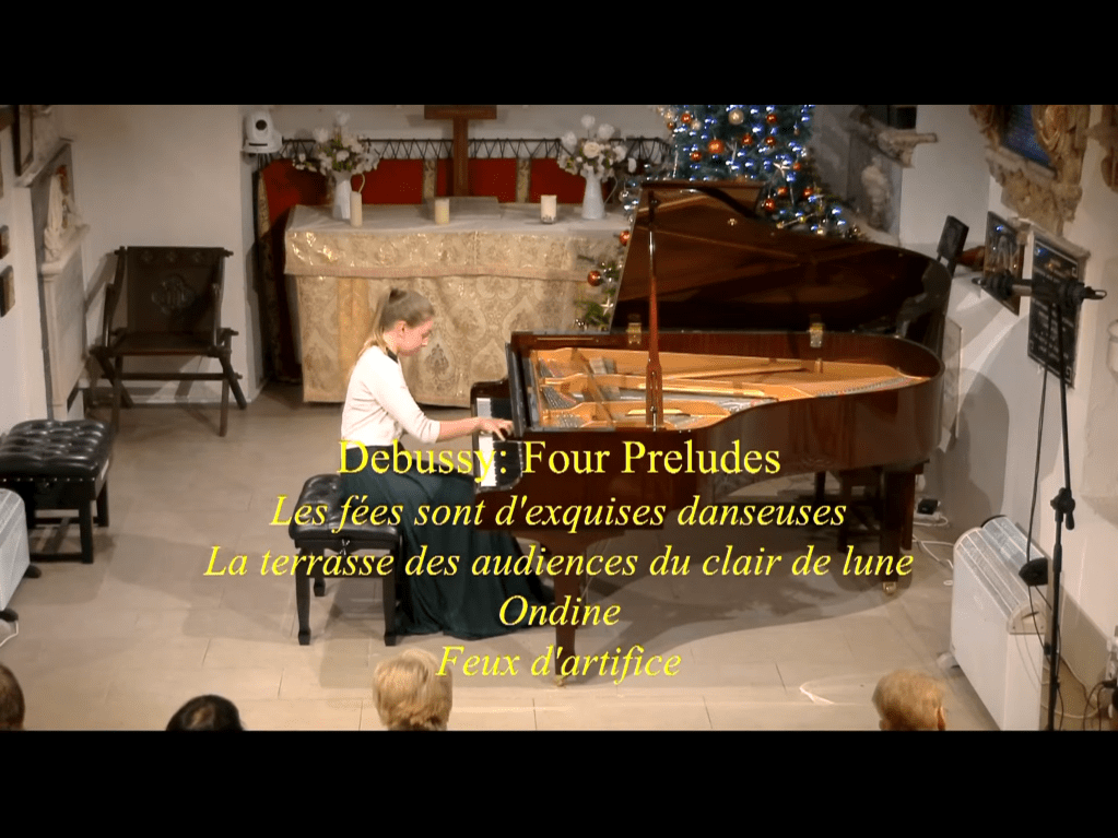 I had heard Rose play Debussy in a recital streamed from St James’s this summer and had been deeply impressed by her identification with this sound world.Today she not only chose four preludes but the extraordinary second book of Images.The multicoloured bells of ravishing sounds spread over the entire keyboard flowed from her entire body with such ease.Like a great painter spreading colour over the entire canvas with strokes of beauty where the sounds she was creating were mirrored in the movements that were making them.’Et La Lune descend ‘,sounds of echoed vibrations and melancholic recollections with a translucency of vibrant lyricism.Played with astonishing delicacy with sounds that at times were barely audible such was their rightful place in this poetic landscape.Have Debussy’s Gold Fish ever been allowed to wallow in such clear waters?An aristocratic French sound of vibrancy and urgency with a fluidity as Debussy asks ‘Expressif et sans rigueur ‘disappearing to a mere magical whisper.