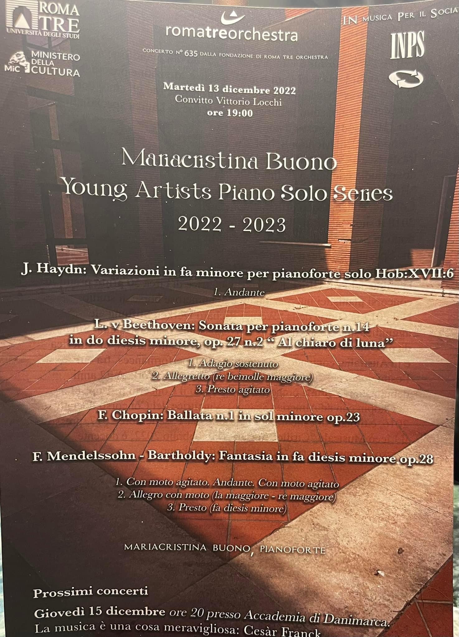 It was nice to see that the opening of the new season of concerts at St.Mary’s should be with a pianist who a few years ago gave a very promising recital at St Barnabas and now has returned to St Mary’s as a very refined artist.From a family of musicians she had from an early age received expert training from her father.Well trained fingers,musicianly performances of intelligence and sensibility.I well remember her scintillatingly diligent account of Schumann’s early Abegg Variations.Today we have seen the transformation of a prize winning student into an artist of stature.